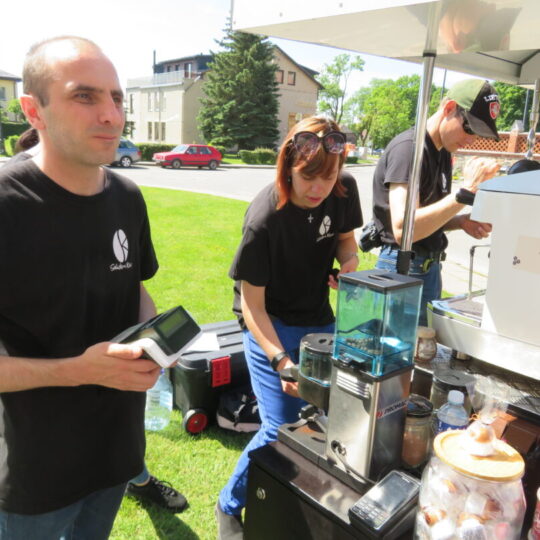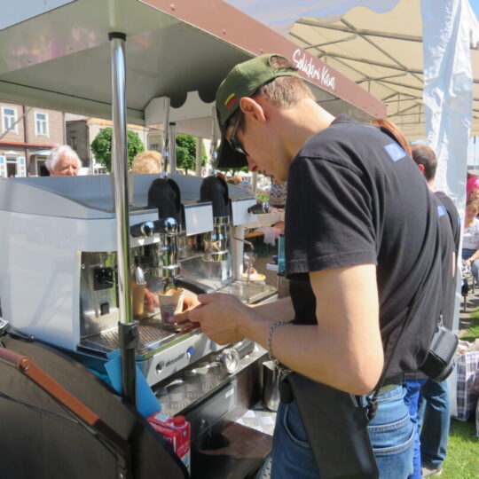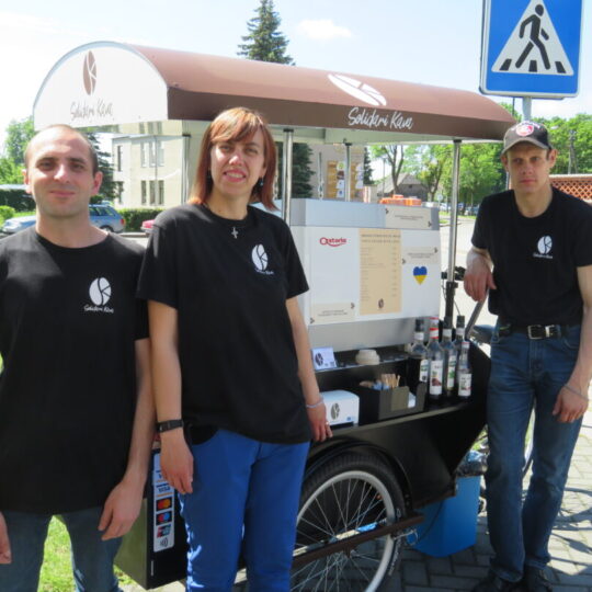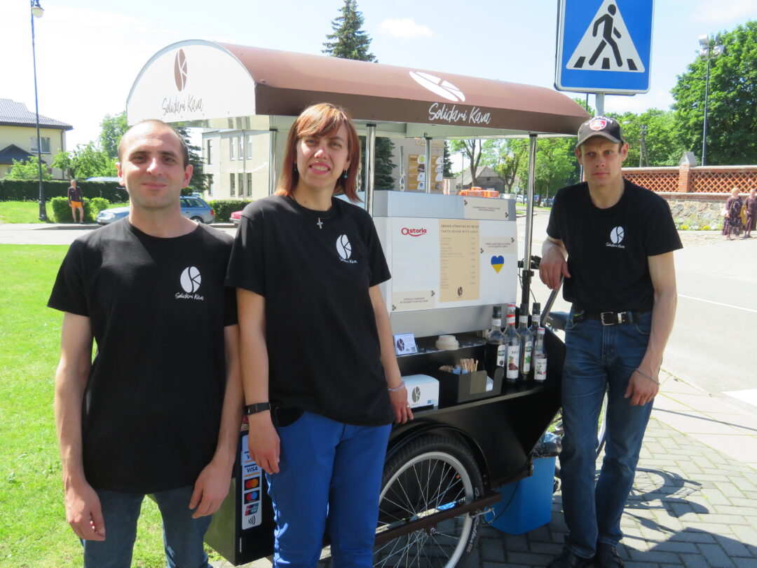 Prieš susibūrimą ir jo metu Nepriklausomybės aikštėje, priešais bažnyčią, virė visai kitoks gyvenimas. Čia siūlyta įsigyti su Rokiškiu susijusios atributikos, už simbolinę kainą buvo galima įsigyti socialinių globos namų gyventojų bei rokiškėnų rankdarbių – kruopščiai, su meile sukurtų namų apyvokos daiktų, puošmenų, smulkmenų, suvenyrų, surinktų žolelių arbatų. Panevėžiečiai atsigabeno vadinamąjį kavos triratį, vaišino 4 rūšių kava, arbata, gaiviaisiais gėrimais, desertu. „Solidarumo kavos“ koordinatorė Aušrinė atskleidė, kad neįgalieji kavos triratį įsigijo už projektines lėšas prieš trejetą metų. Vasaromis beveik kiekvieną savaitgalį būna kur nors kviečiami arba patys sugalvoja, kur vykti prekiauti kava.