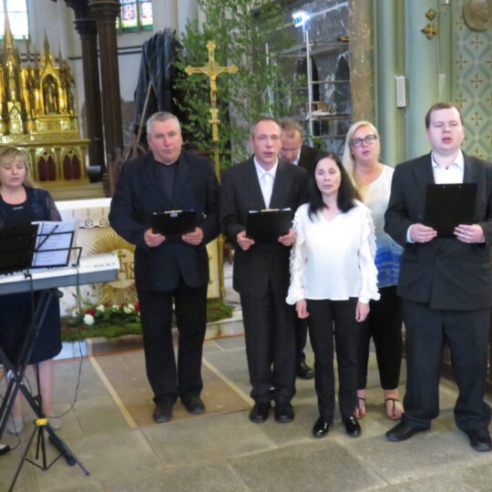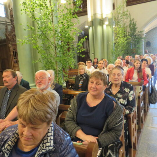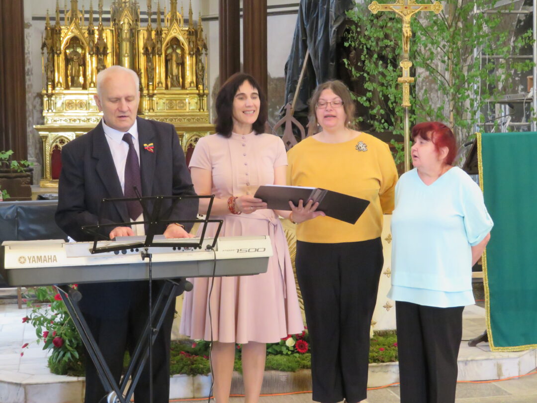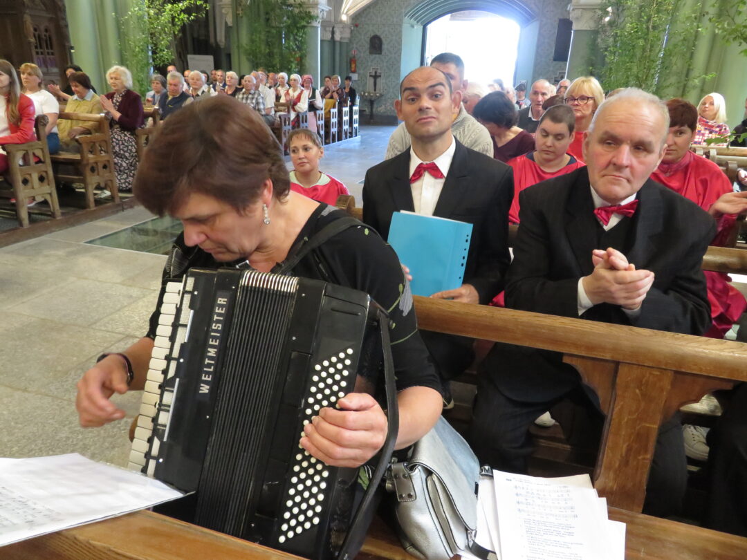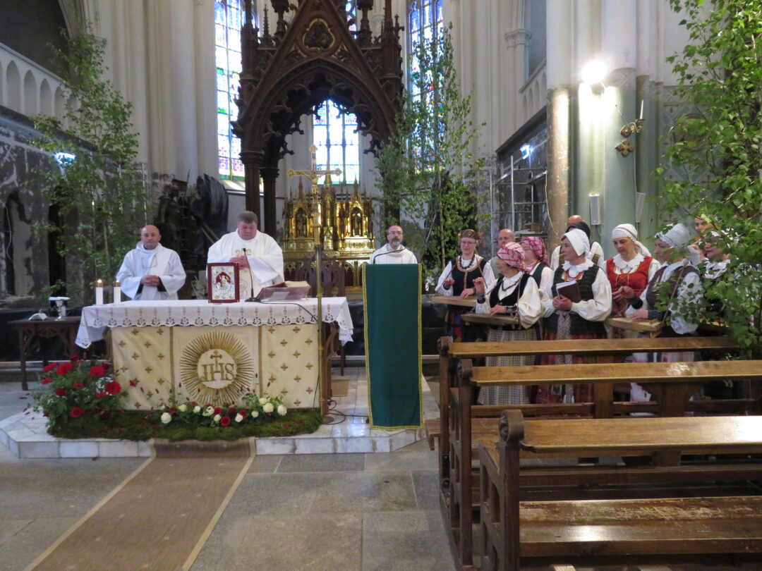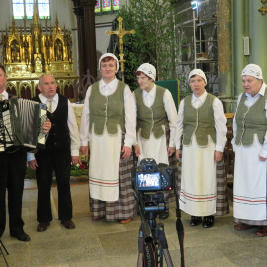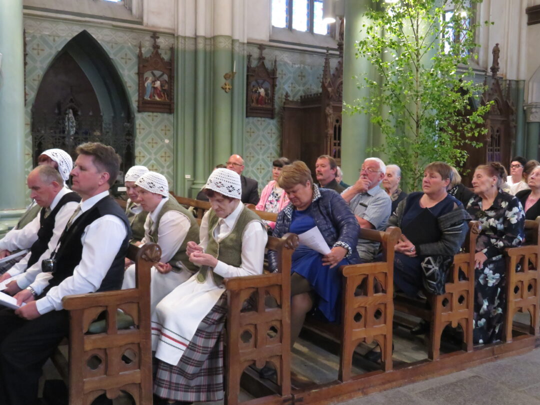 Vėliau buvo aukojamos Šv. Mišios, skirtos Švč. Mergelės Marijos garbei. Jose giedojo svečiai – iš Vilniaus atvykęs Mokytojų namų liaudiškos muzikos ansamblis „Kankleliai“.