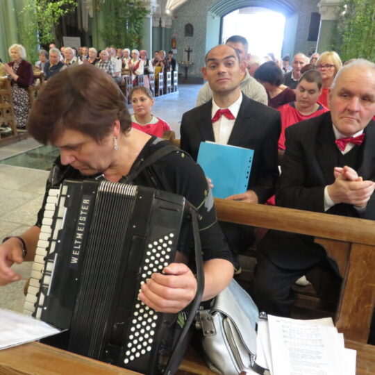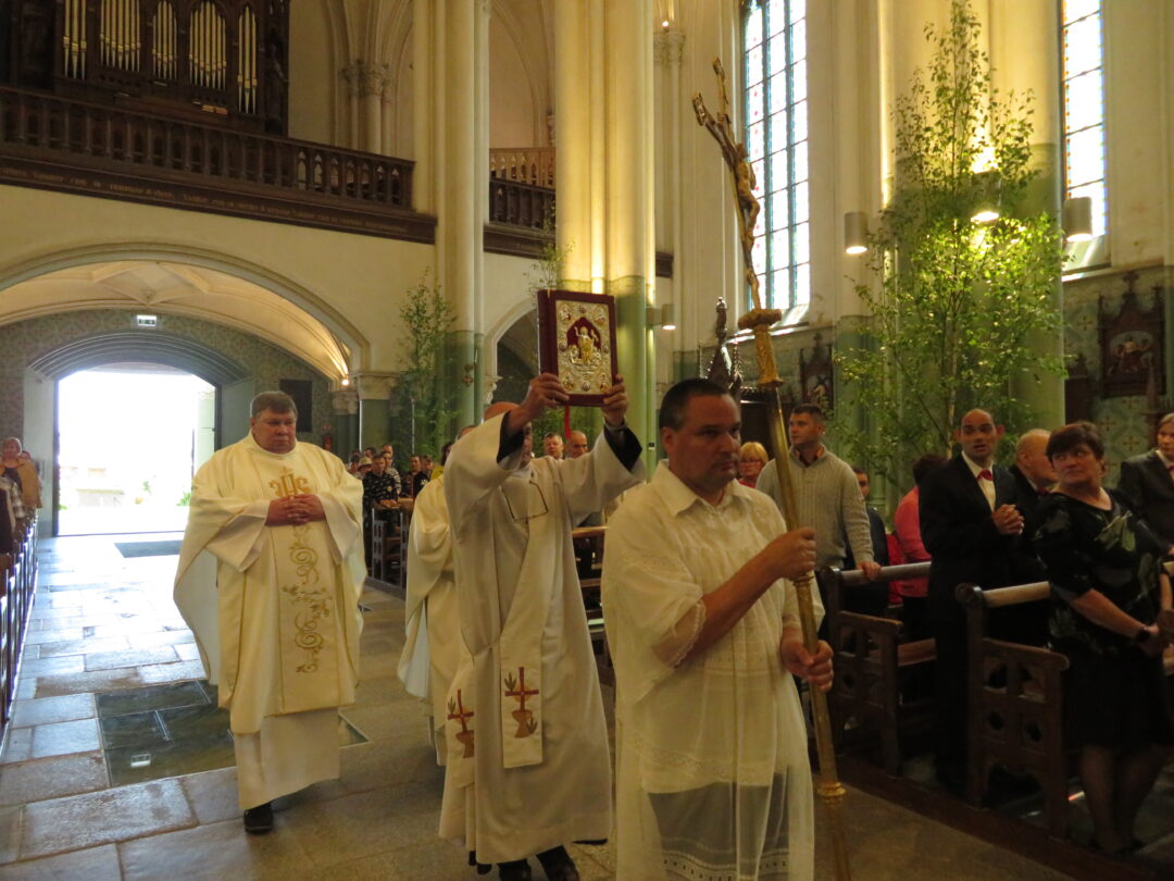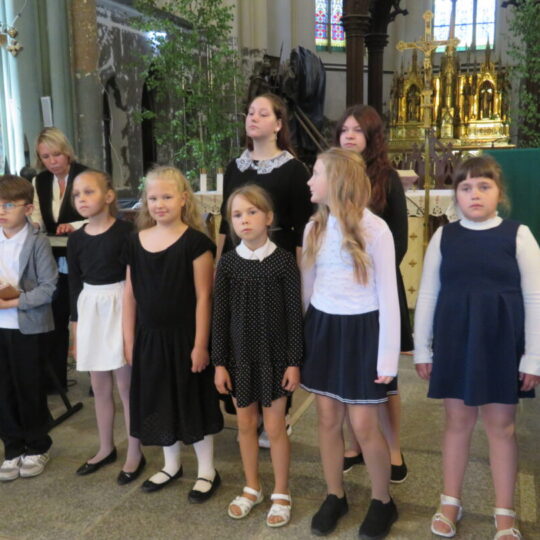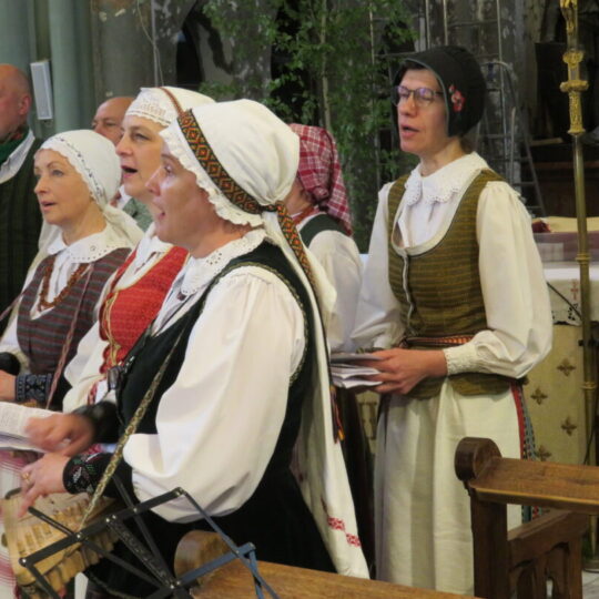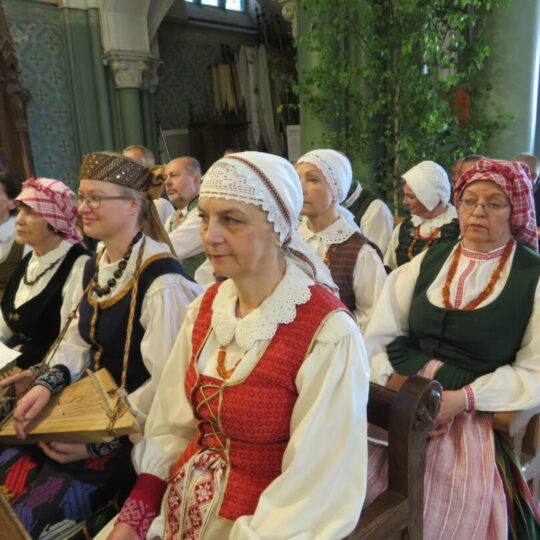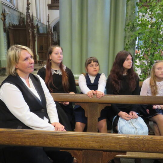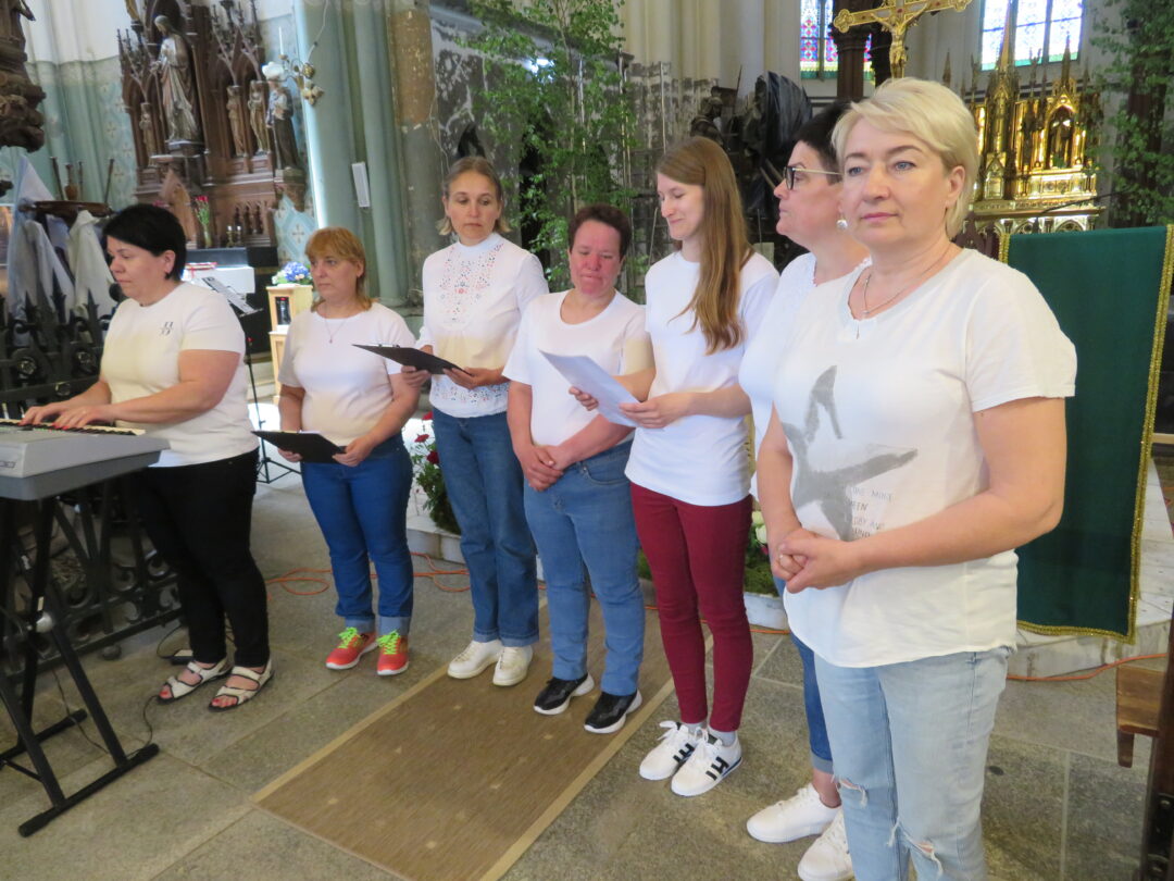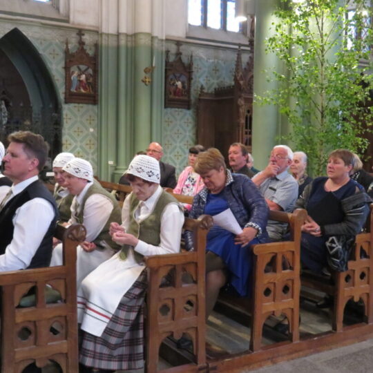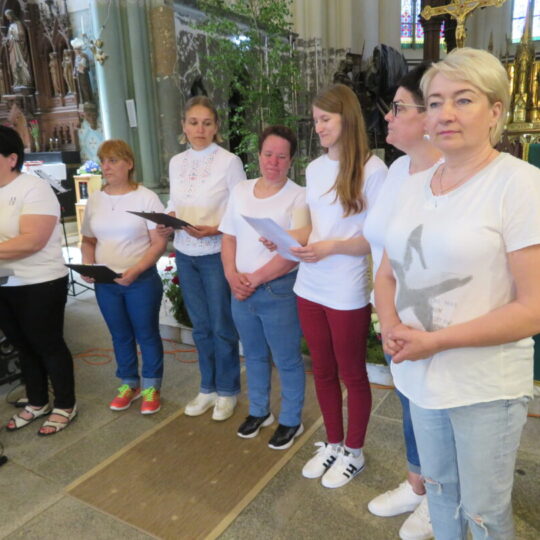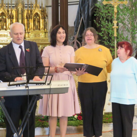 Vėliau buvo aukojamos Šv. Mišios, skirtos Švč. Mergelės Marijos garbei. Jose giedojo svečiai – iš Vilniaus atvykęs Mokytojų namų liaudiškos muzikos ansamblis „Kankleliai“.