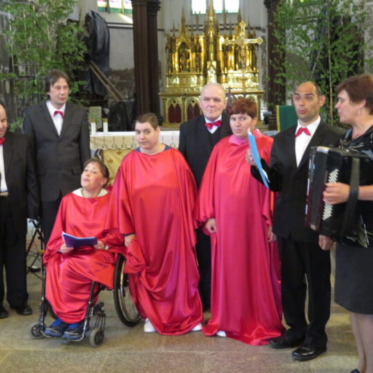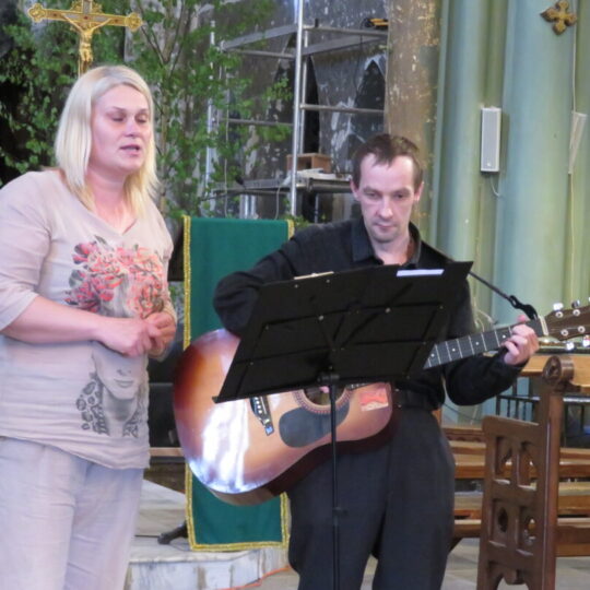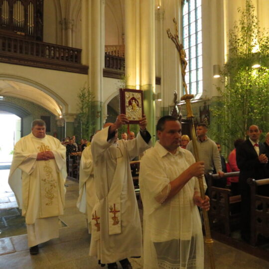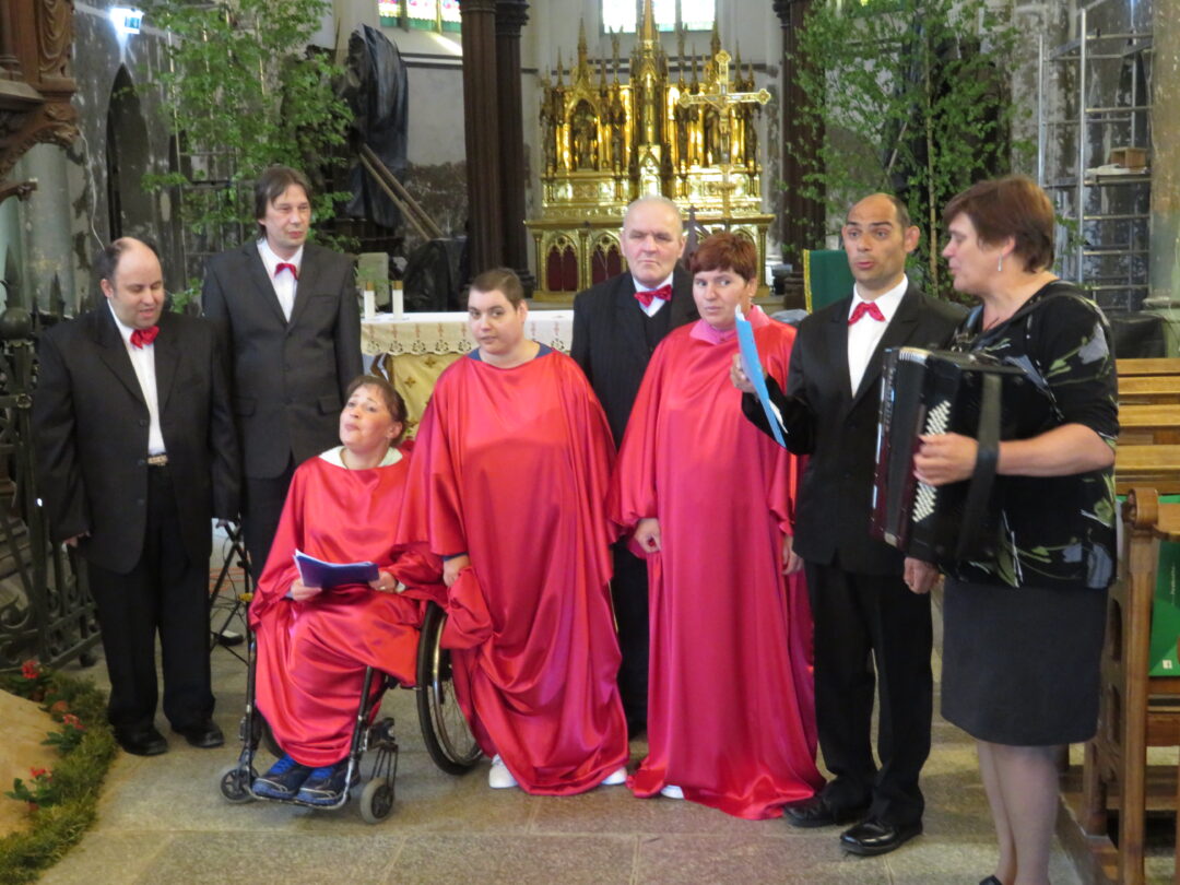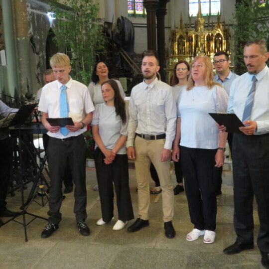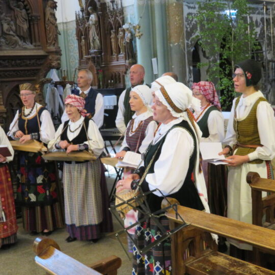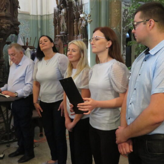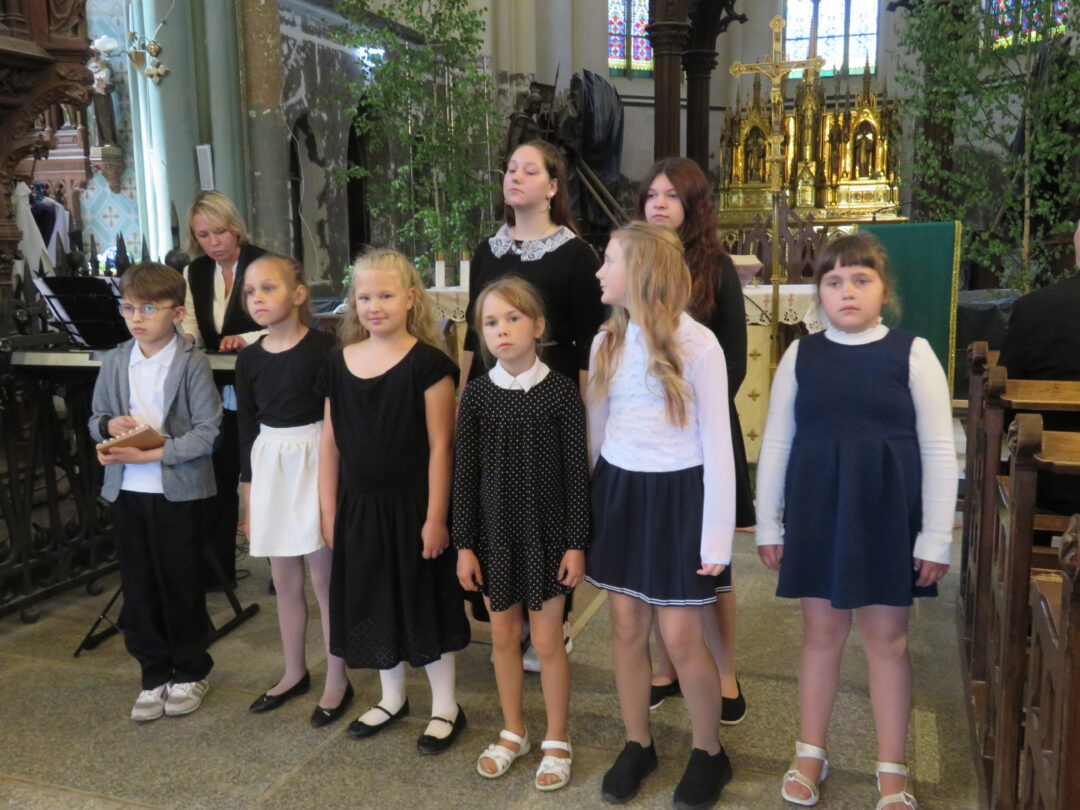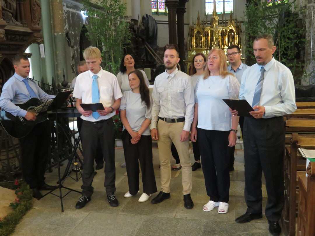 Vėliau buvo aukojamos Šv. Mišios, skirtos Švč. Mergelės Marijos garbei. Jose giedojo svečiai – iš Vilniaus atvykęs Mokytojų namų liaudiškos muzikos ansamblis „Kankleliai“.