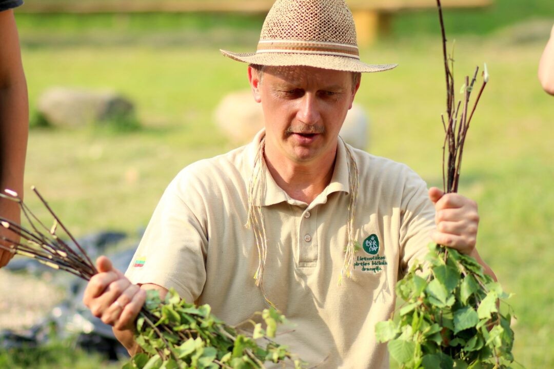Pasiskirstę grupelėmis moksleiviai patys kibo rišti vantų. Įdėmiai klausydami svečių, pasidarė ne po vieną vantą. Žaliavos parūpino miškininkai.