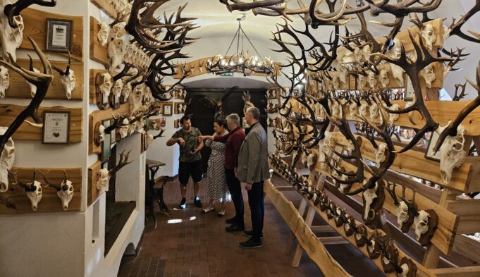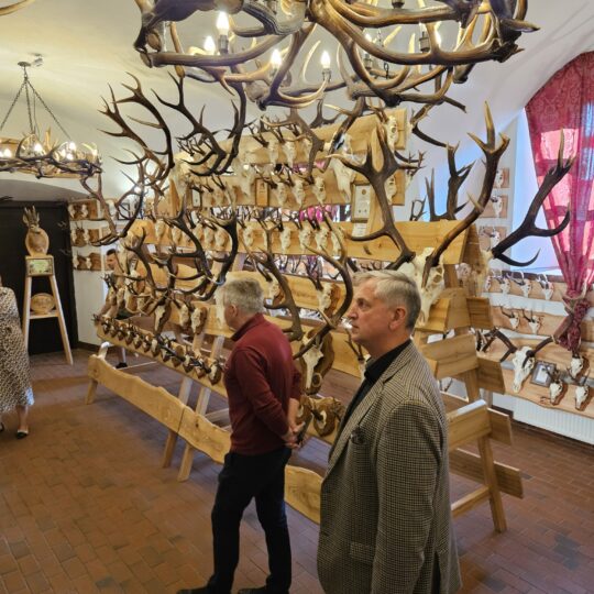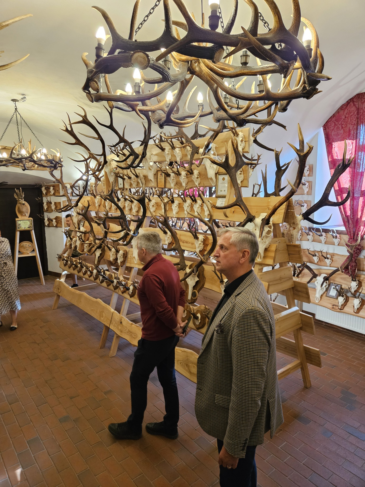 Merą pasitiko ir pats ekspozicijos savininkas Jonas Smalinskas, aprodęs vertingiausius eksponatus, laimėjusius auksą. Tokių kolekcijoje yra 10. Daug trofėjų apdovanoti sidabro, bronzos medaliais, visi jie eksponuojami atskirai.