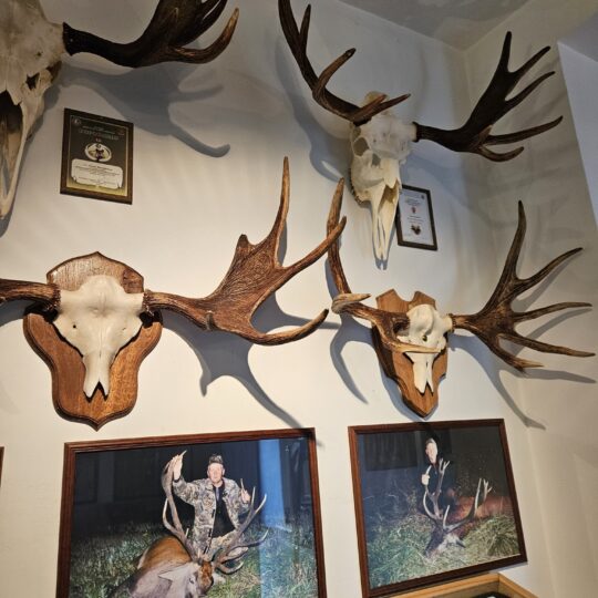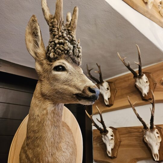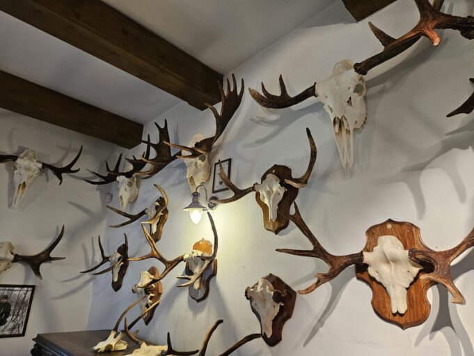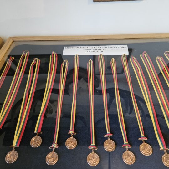 „Iš viso mano ir sūnaus Simo sukauptoje trofėjų kolekcijoje yra per tūkstantis eksponatų. Juos sukaupėme per 80 metų, sudėjus mano ir sūnaus medžioklės metus. Pavyzdžiui, sūnui Simui pirmąjį „auksinį“ trofėjų – stirnino ragus – pavyko sumedžioti vos 18-kos metų – ką tik pradėjus medžioti“, – sako J. Smalinskas.