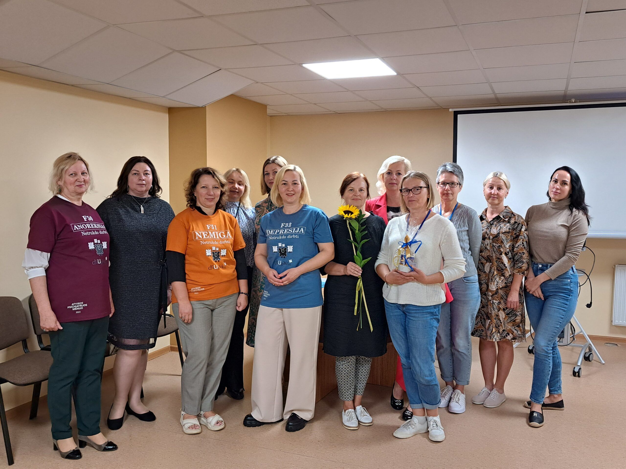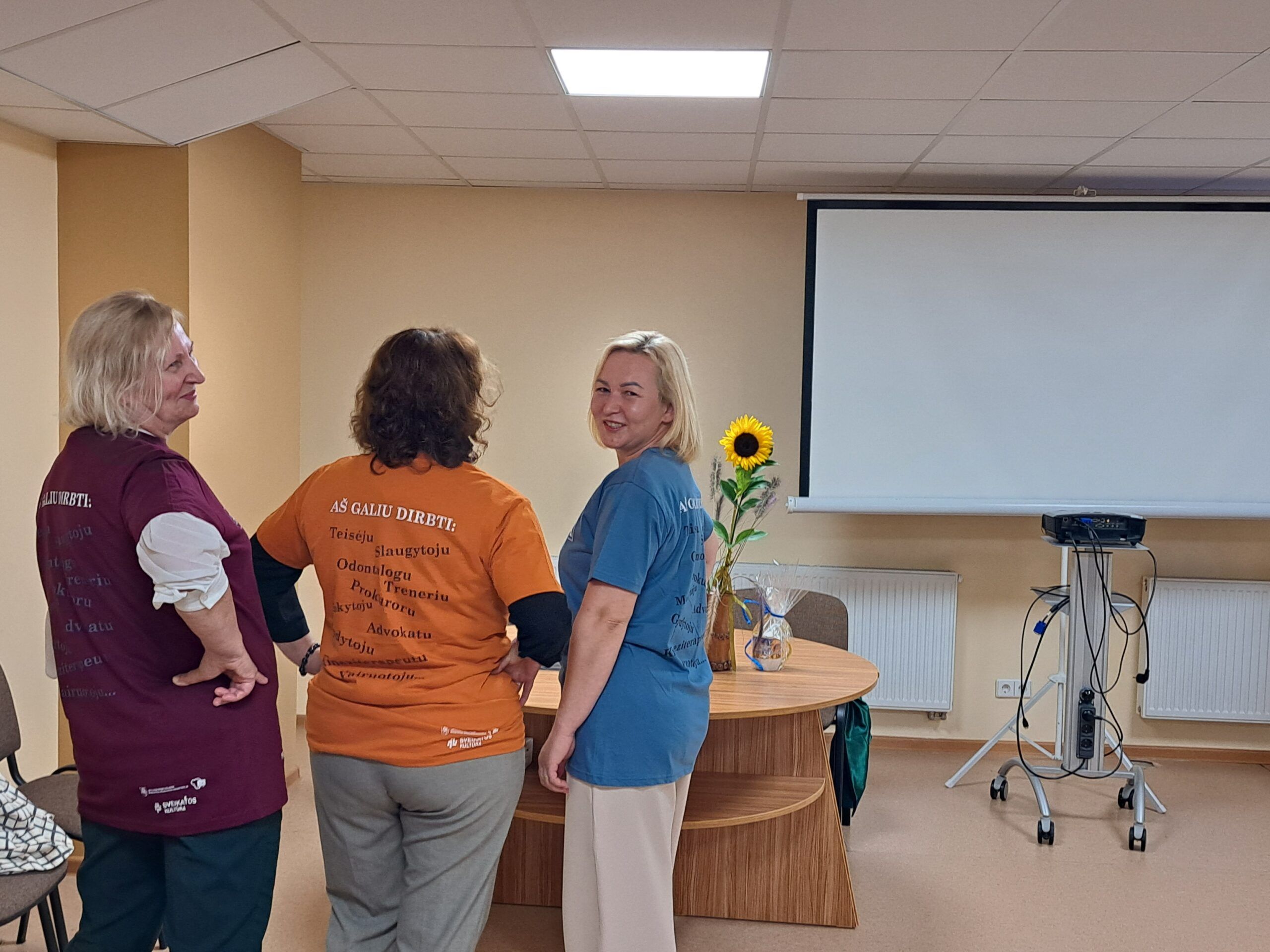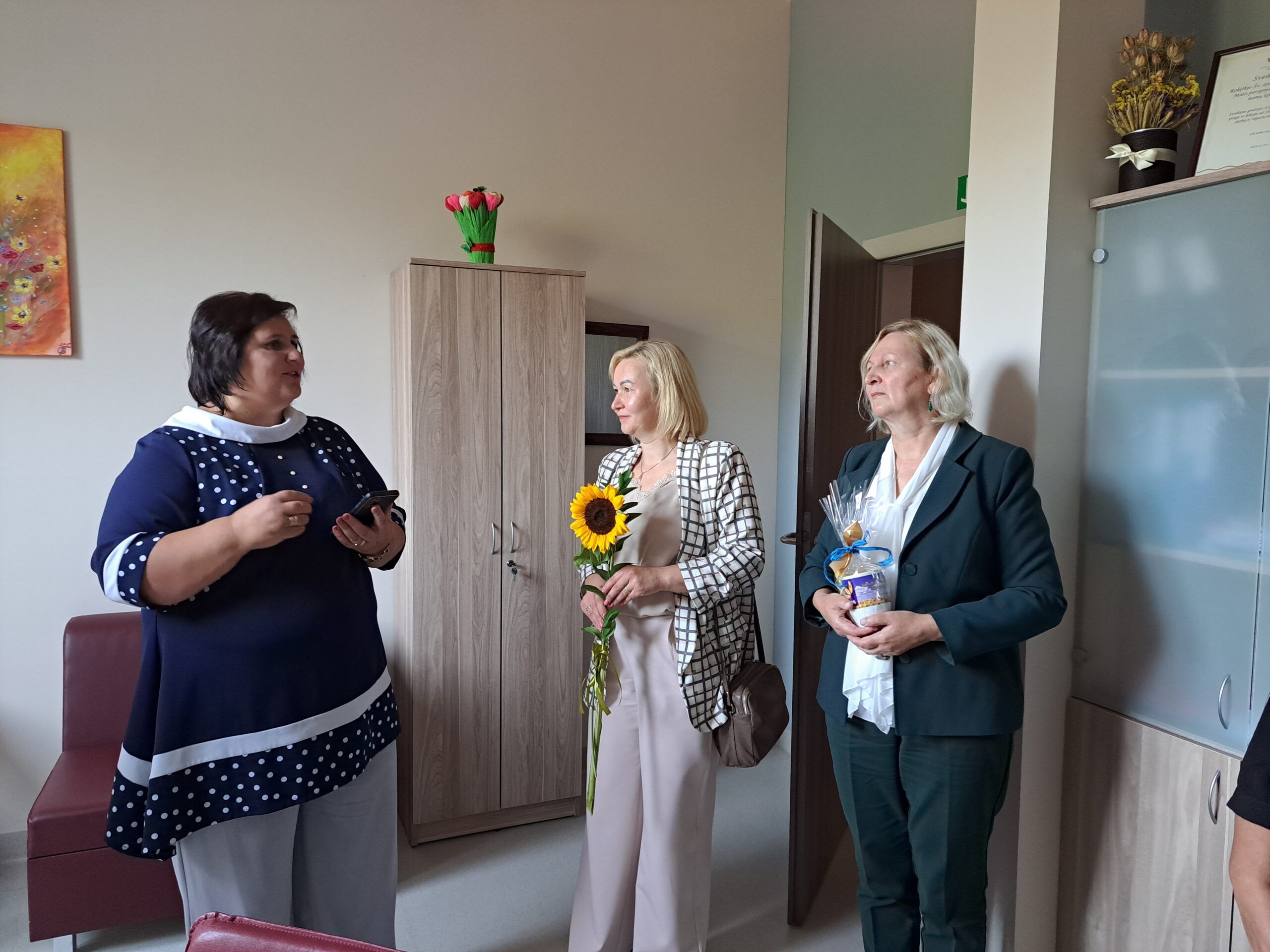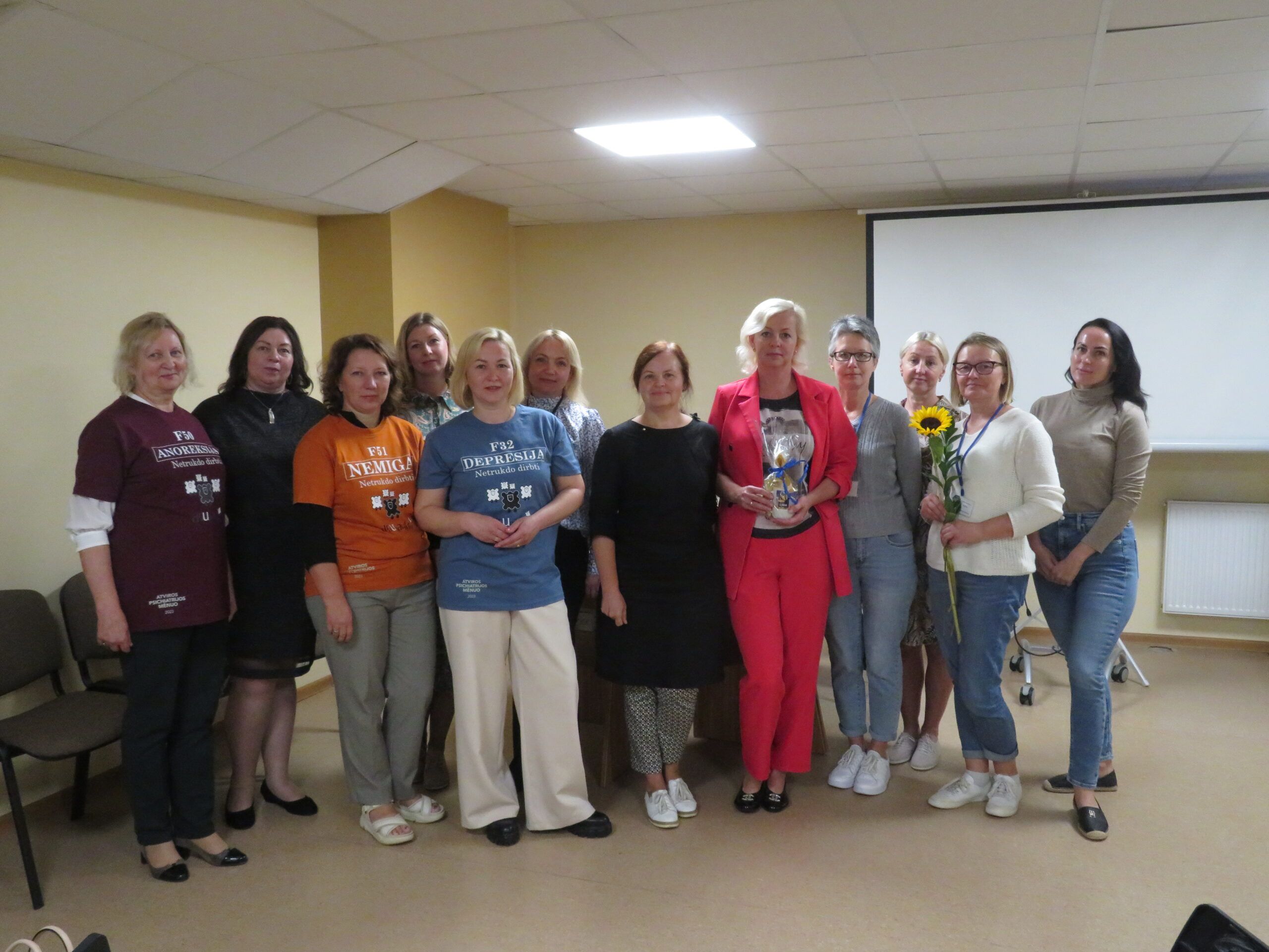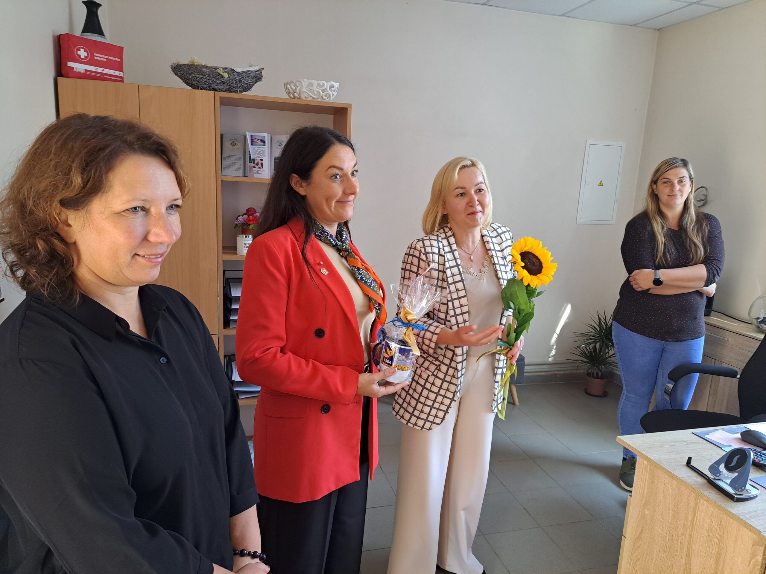 Viešnios sveikino darbuotojus artėjančios profesinės šventės proga ir kiekvienam kolektyvui įteikė po specialiai pagamintą puodelį bei gėlių, pasidalijo lūkesčiais, problemomis, džiaugsmais. Nors socialinis darbas sunkus, tačiau jis nenumarina humoro jausmo. Rokiškio psichiatrijos ligoninės darbuotojos viešnioms padovanojo marškinėlius, ant kurių užrašytos skirtingos diagnozės – nemiga, depresija, anoreksija – ir šalia nuraminantis užrašas, kad jos netrukdo dirbti.