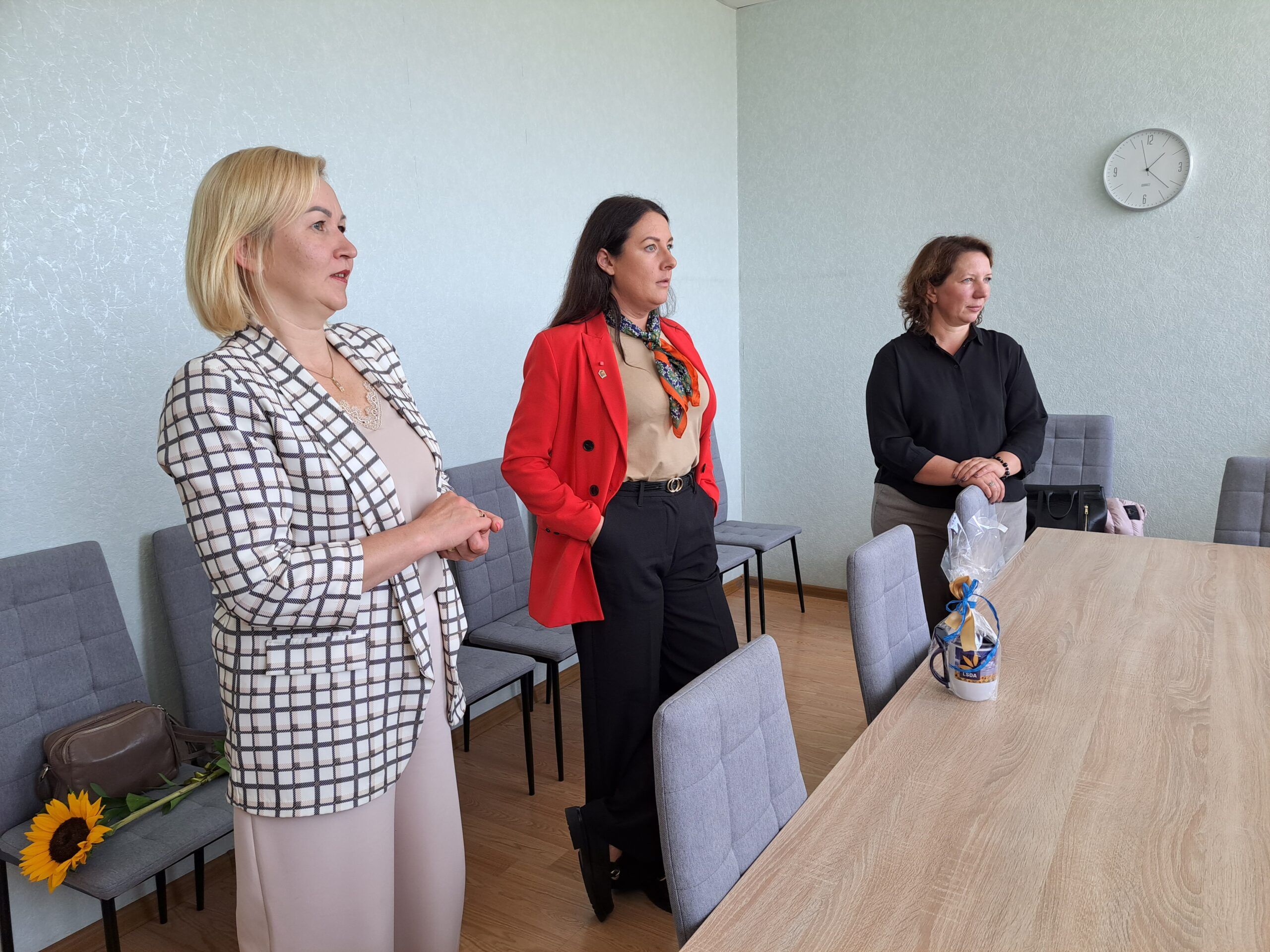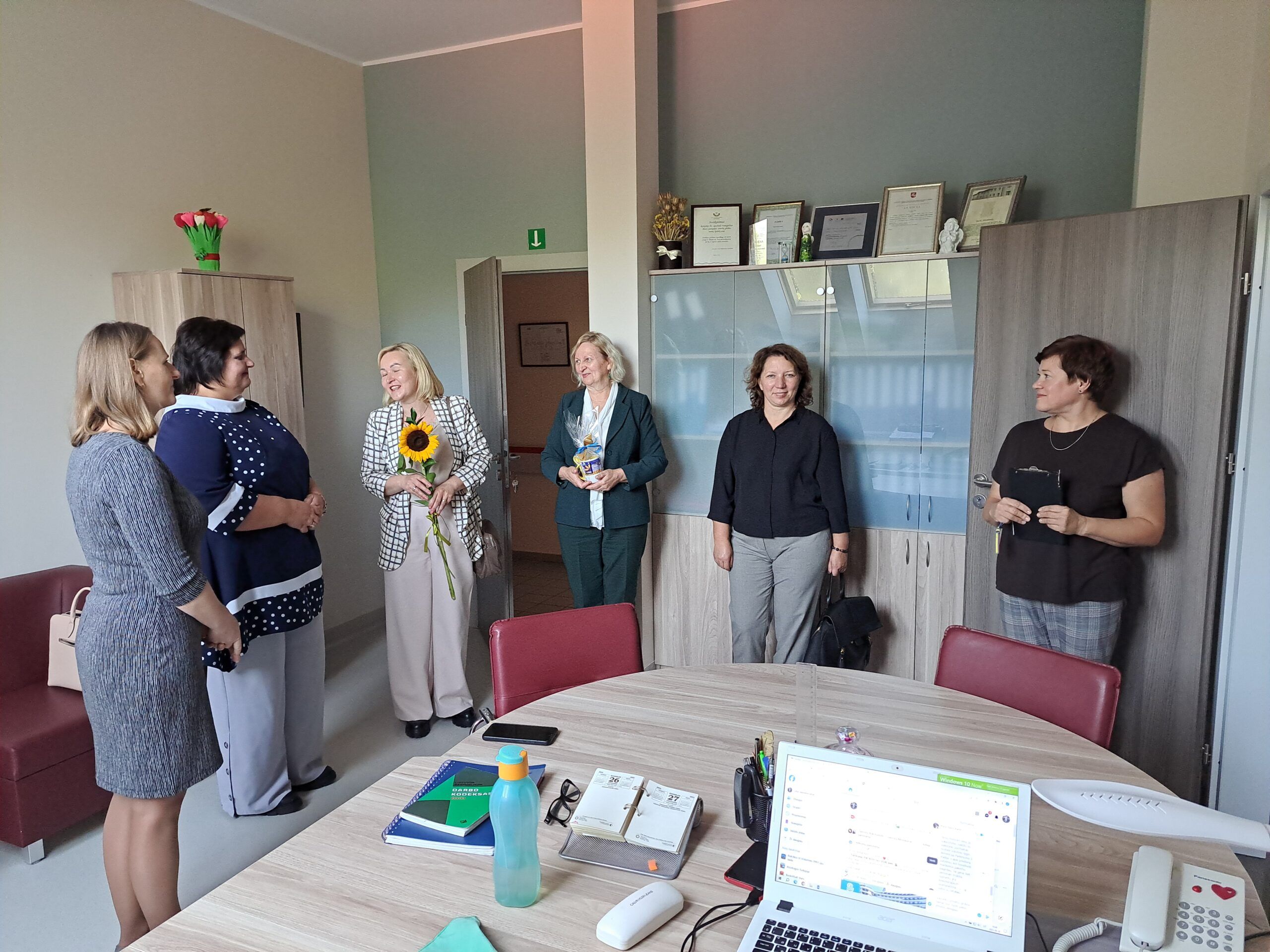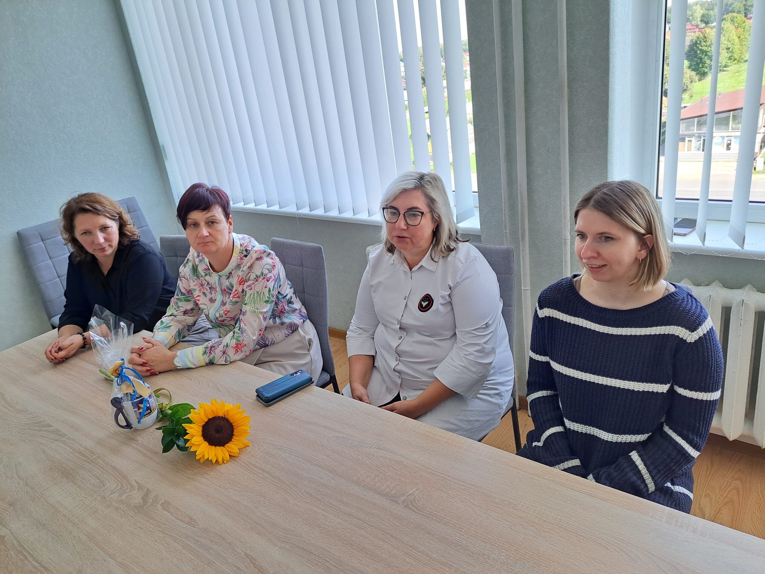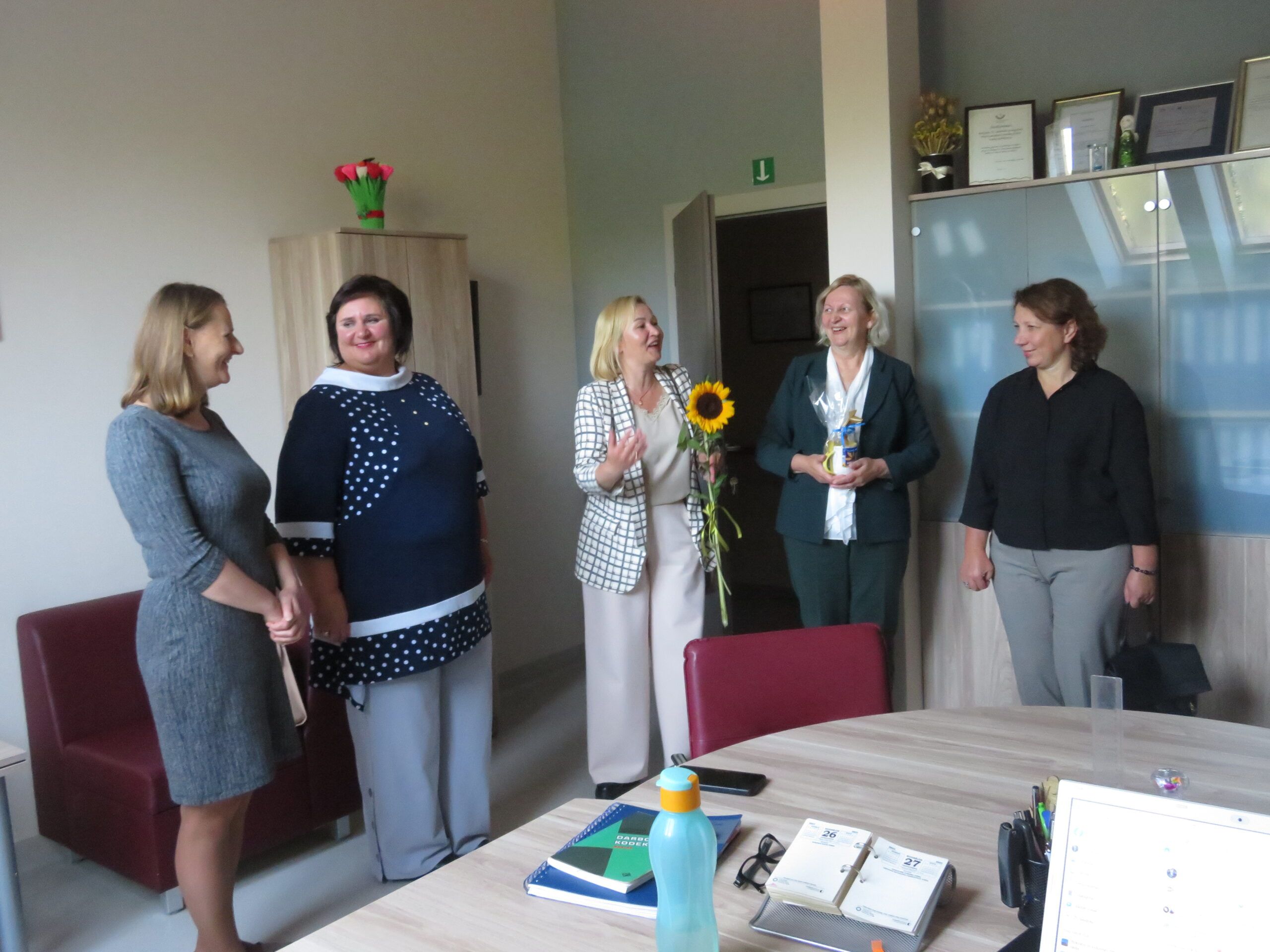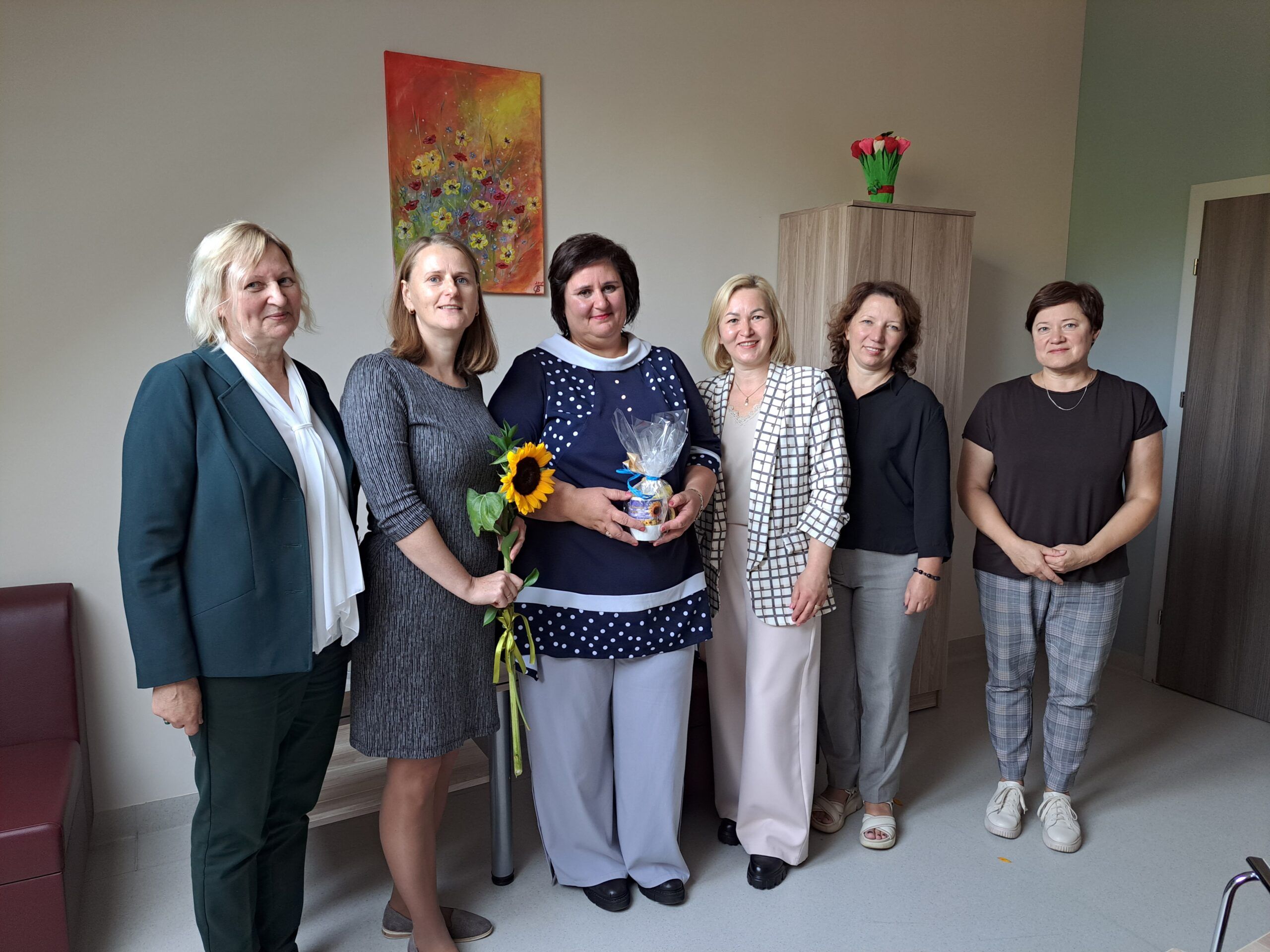 Viešnios sveikino darbuotojus artėjančios profesinės šventės proga ir kiekvienam kolektyvui įteikė po specialiai pagamintą puodelį bei gėlių, pasidalijo lūkesčiais, problemomis, džiaugsmais. Nors socialinis darbas sunkus, tačiau jis nenumarina humoro jausmo. Rokiškio psichiatrijos ligoninės darbuotojos viešnioms padovanojo marškinėlius, ant kurių užrašytos skirtingos diagnozės – nemiga, depresija, anoreksija – ir šalia nuraminantis užrašas, kad jos netrukdo dirbti.