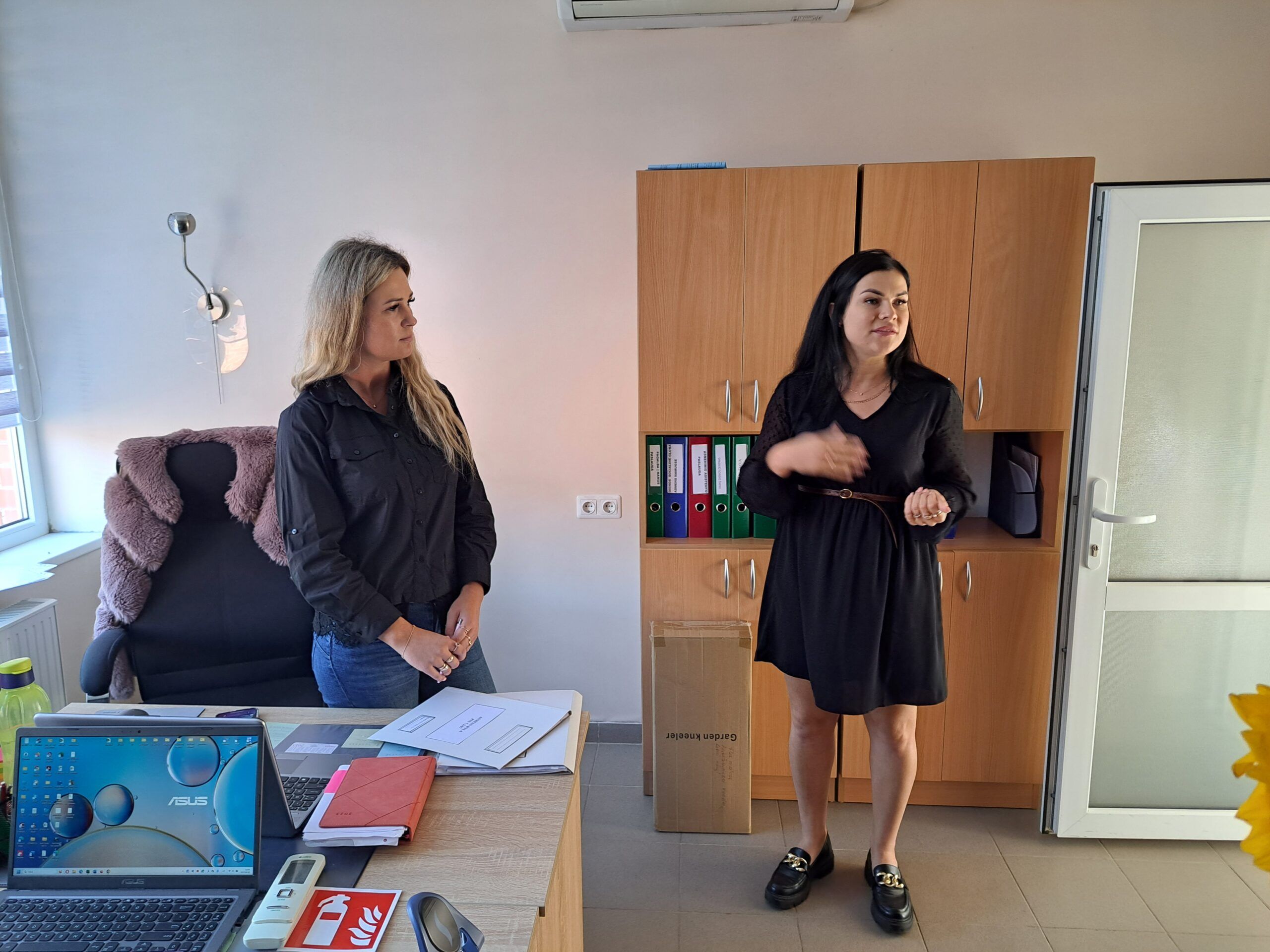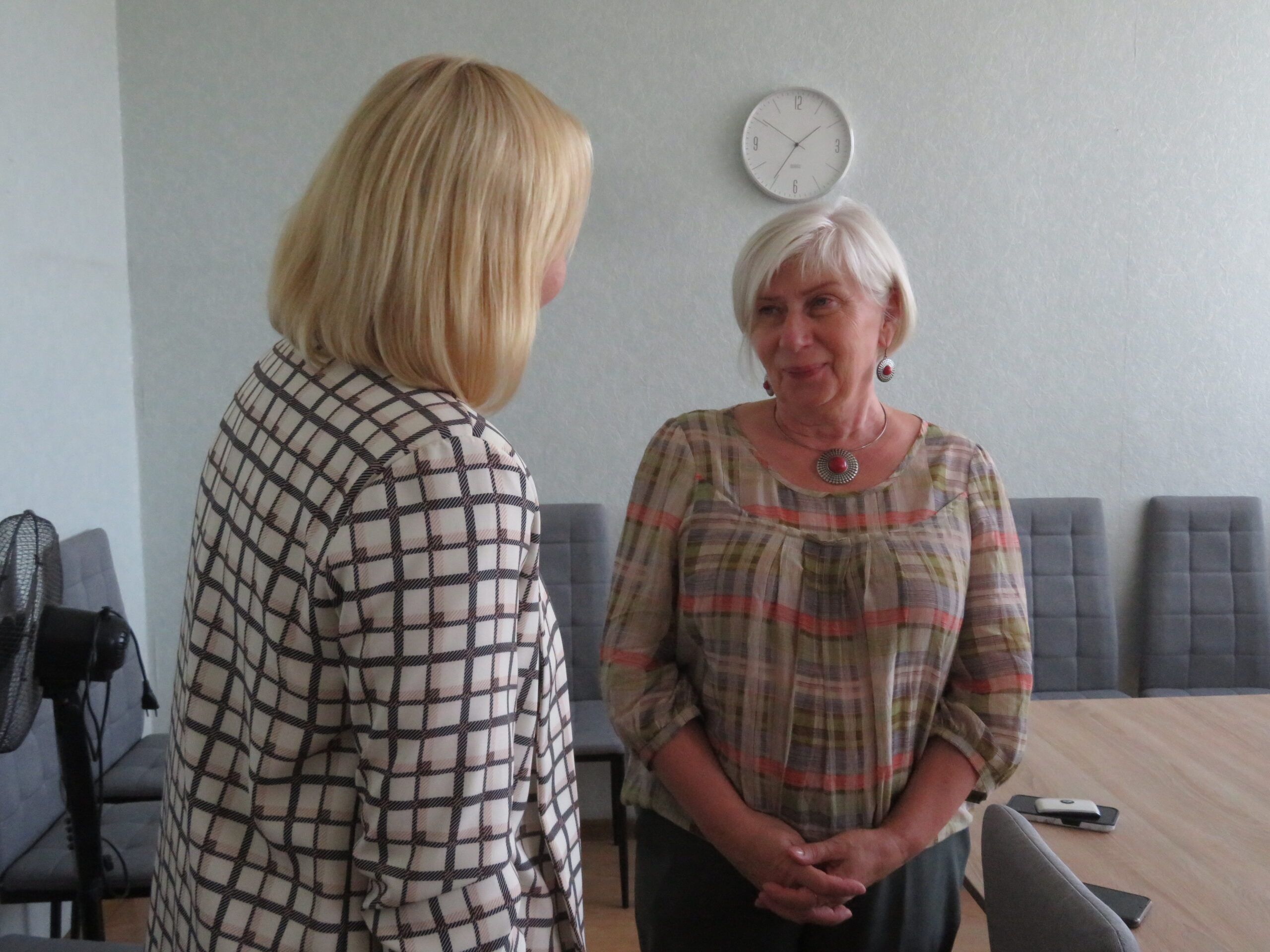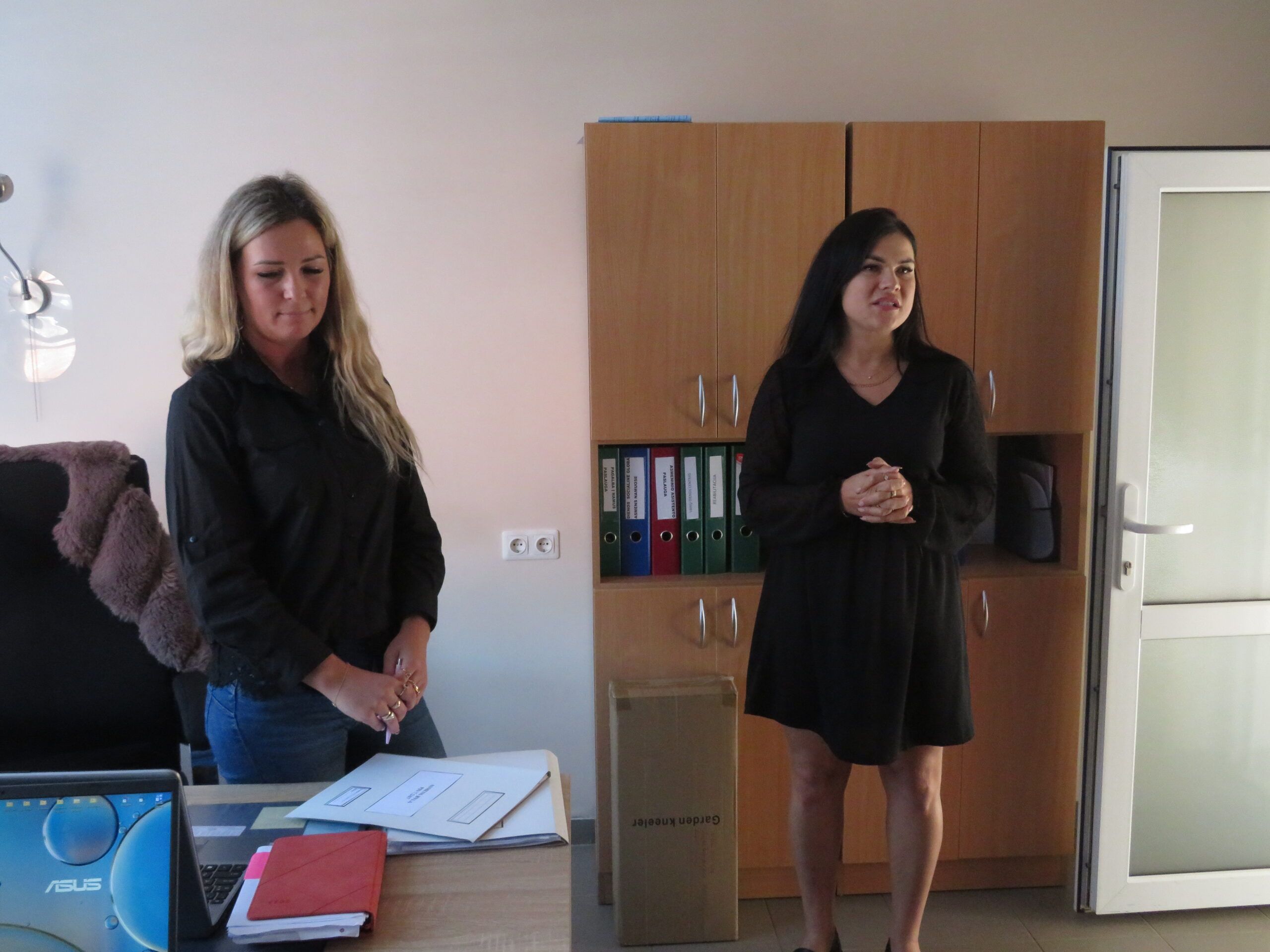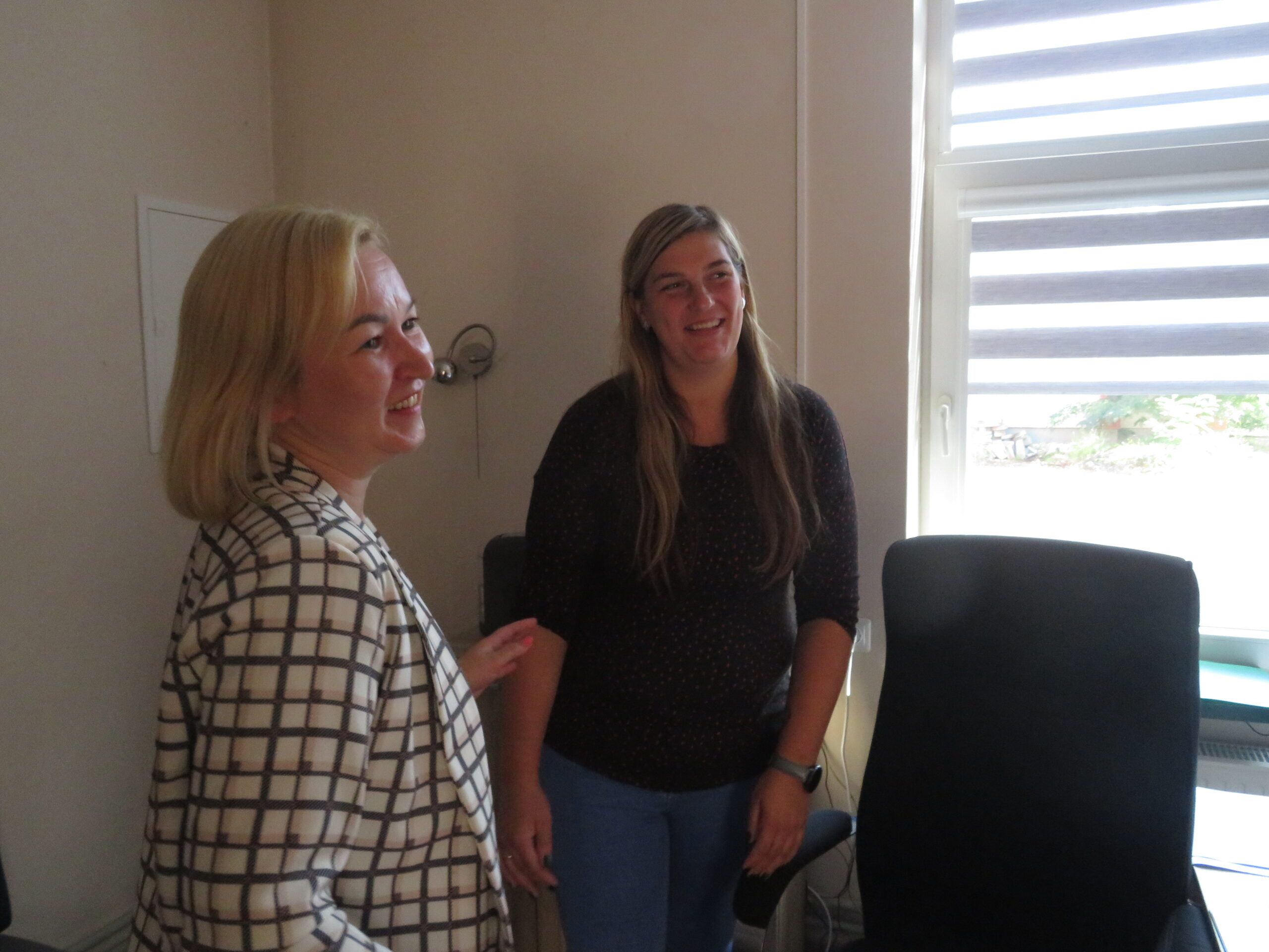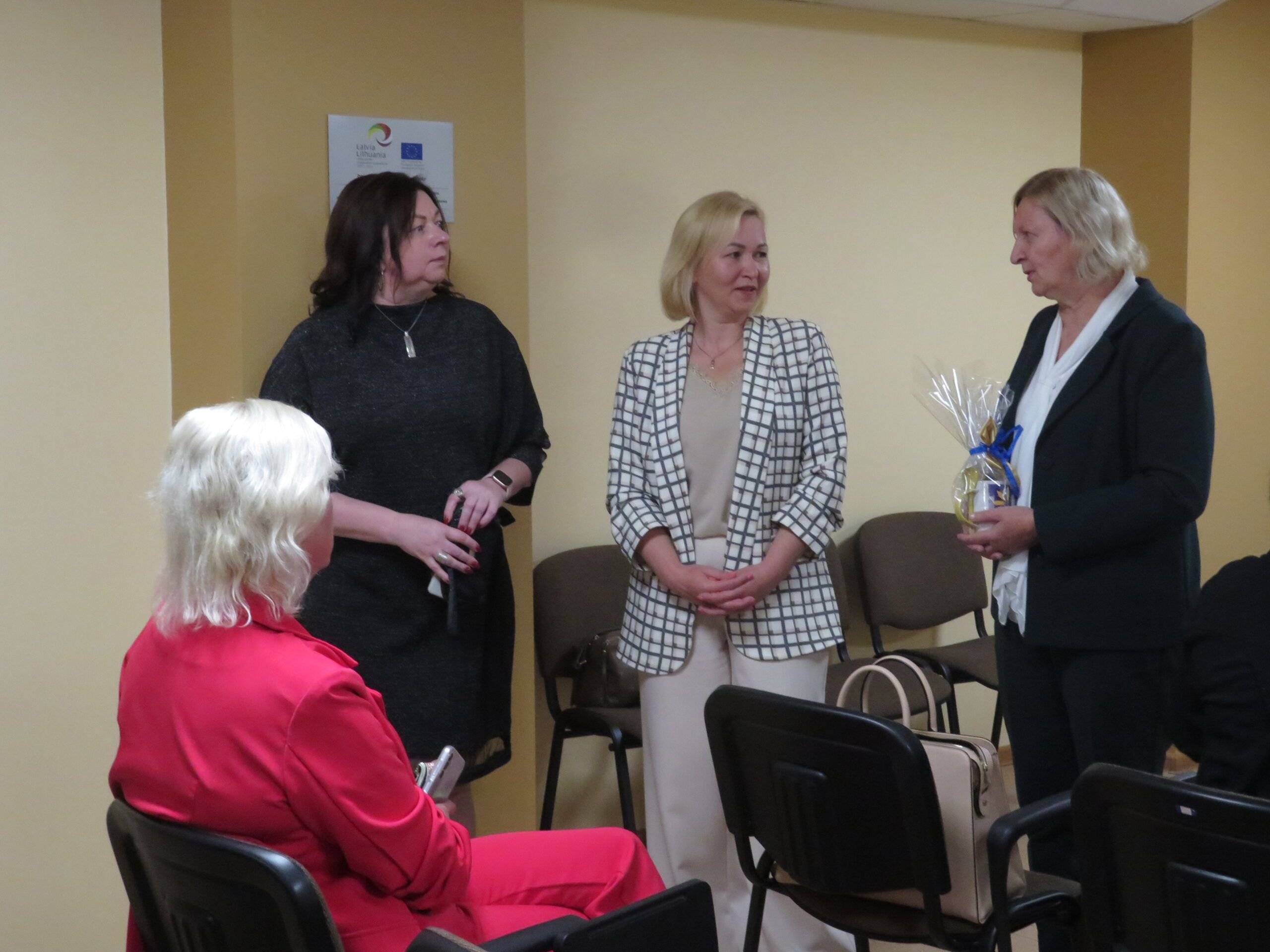 Viešnios sveikino darbuotojus artėjančios profesinės šventės proga ir kiekvienam kolektyvui įteikė po specialiai pagamintą puodelį bei gėlių, pasidalijo lūkesčiais, problemomis, džiaugsmais. Nors socialinis darbas sunkus, tačiau jis nenumarina humoro jausmo. Rokiškio psichiatrijos ligoninės darbuotojos viešnioms padovanojo marškinėlius, ant kurių užrašytos skirtingos diagnozės – nemiga, depresija, anoreksija – ir šalia nuraminantis užrašas, kad jos netrukdo dirbti.