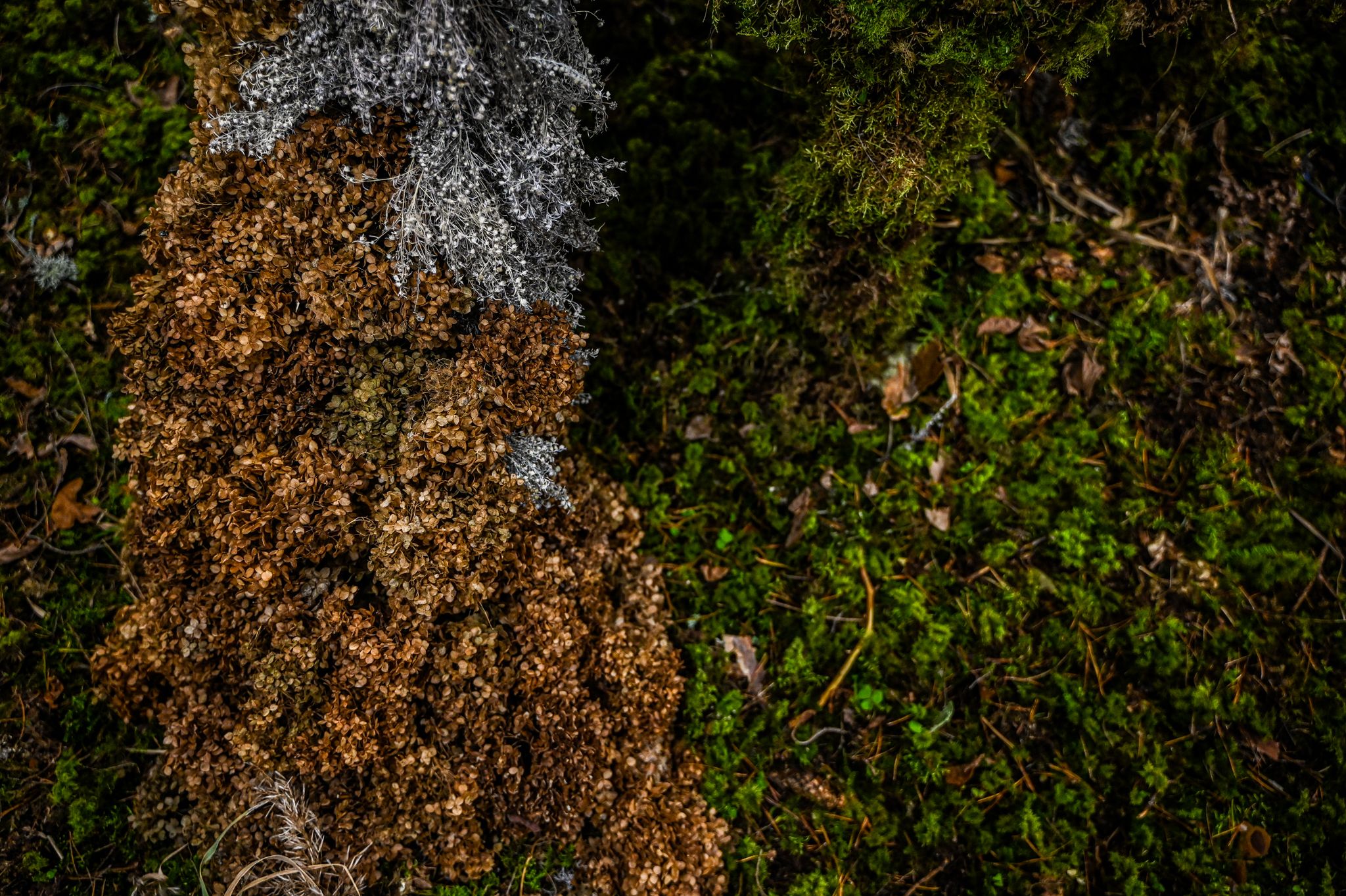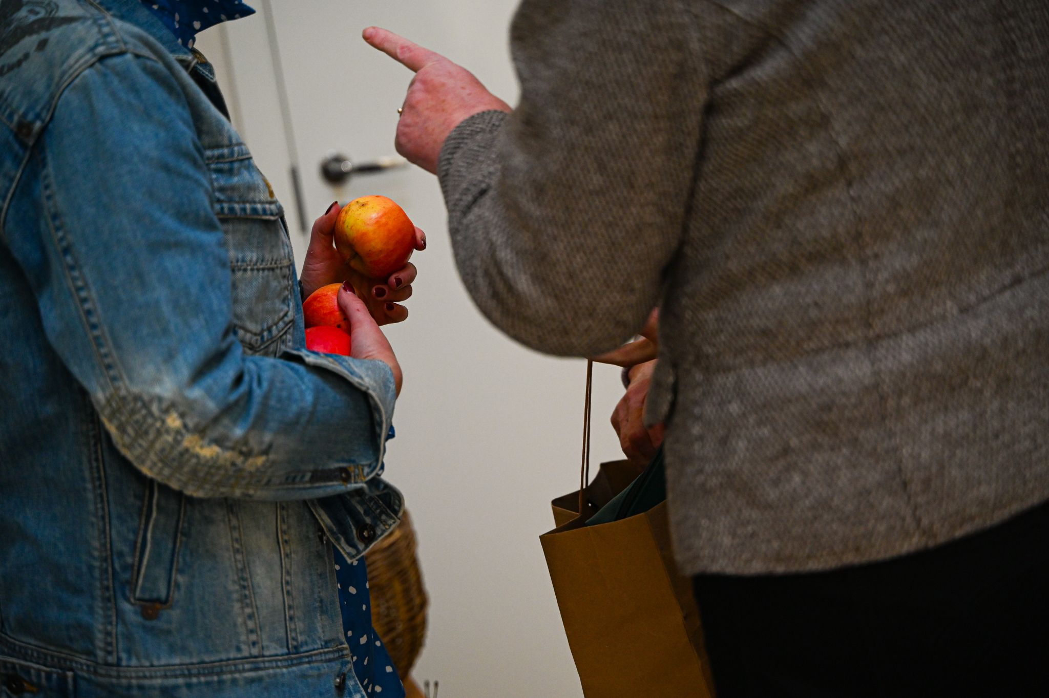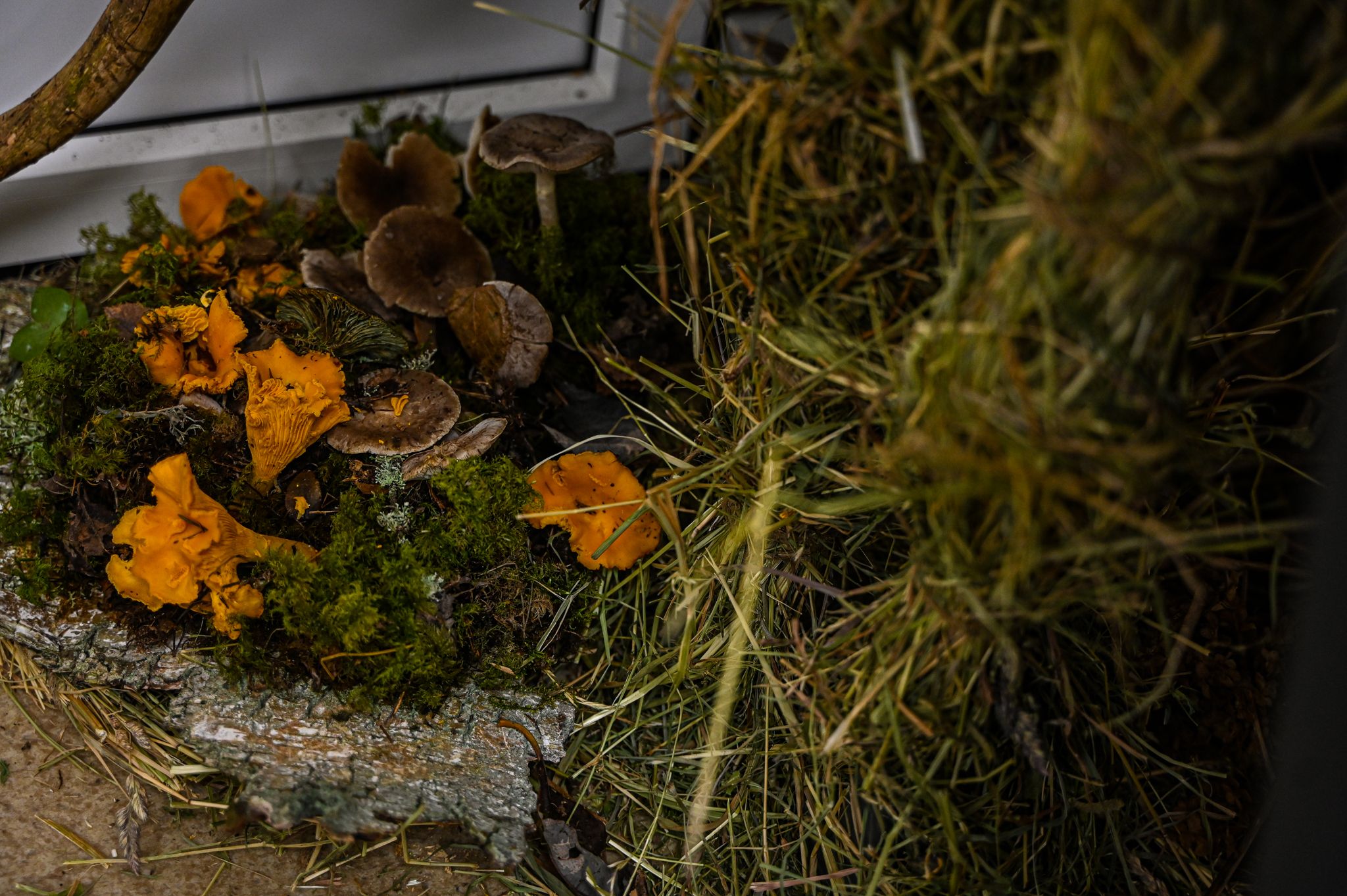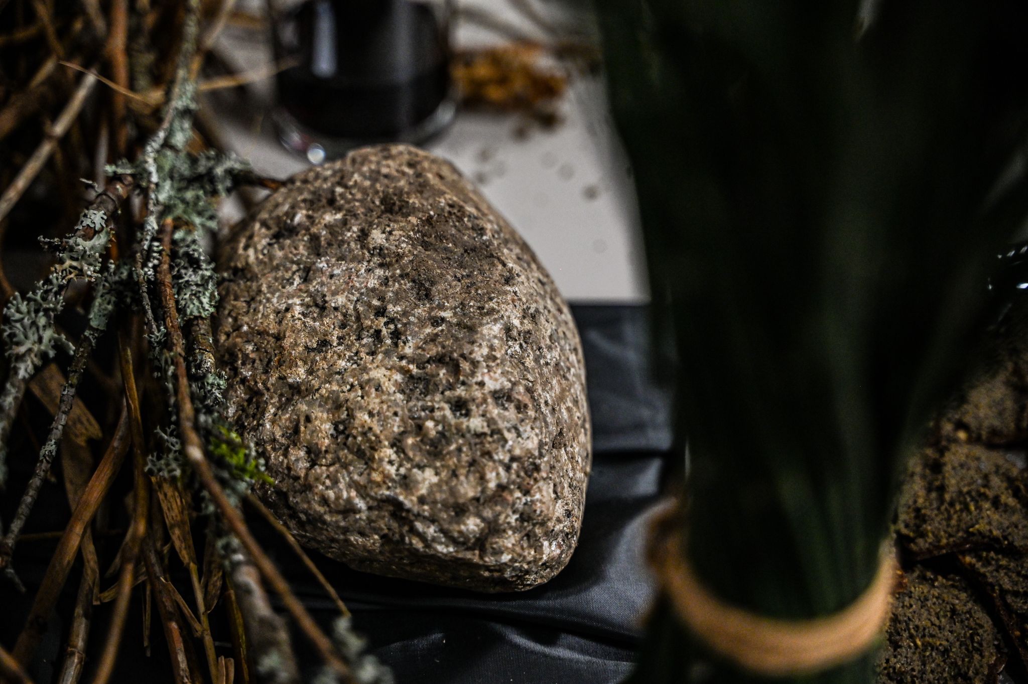 Ji sakė, kad instaliaciją sugalvojo visiškai spontaniškai ir per porą dienų vienoje iš bendruomenės salių ją sudėliojo kartu su Romu ir Daiva Kundeliais. Nors dirba su įvairiausiais pasaulio augalais, šimtais įvairiausių gėlių rūšių, šioje instaliacijoje jai mieliausia tai, kad absoliučiai viskas iš Obelių. Samanos, beržo tošis, obuoliai, lapai, smilgos, nurodavusios gėlės, kurias jau ketinta nupjauti, o kompozicijai puikiausiai tiko.