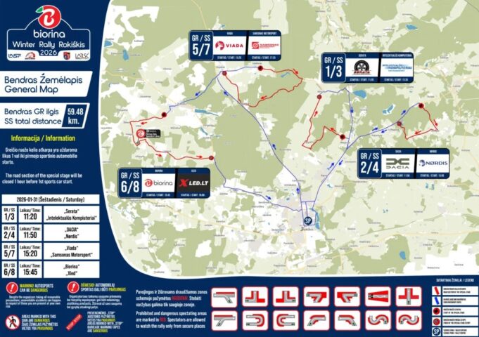 Rokiškio rajono mero potvarkiu, vykstant 2026 m. žiemos raliui „Biorina Winter Rally Rokiškis“, sausio 30-31 d. kai kuriose gatvėse ir keliuose laikinai bus ribojamas eismas: