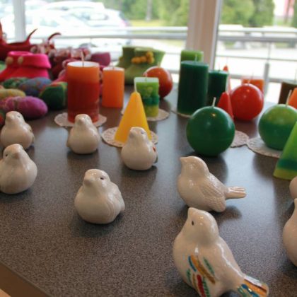 Darbai stebina įvairove, kruopštumu ir išmone: vazos, indai, puošybos elementai iš keramikos – iš balto, geltono, raudono molio masių, fajanso-šlikerio bei šamoto. Kita darbų grupė – natūralūs muilai, žvakės, veltinio gaminiai, dekoracijos – didžiuliais žiedais gėlės iš šilko popieriaus, kurias sukūrė vien pacientai vyrai. Meniški darba sukurti Užimtumo ir socialinės reabilitacijos centre bei Profesinės reabilitacijos tarnyboje.