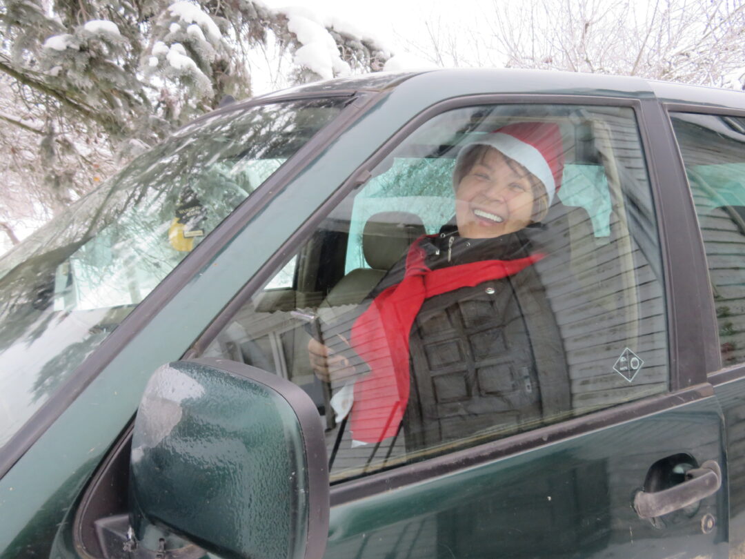 Aplankę dar keletą lailūniečių, sukame į tolimesnius kaimus. Vienkiemiai. Pas kai kuriuos nuo pagrindinio kelio iki namo tenka brautis per sniegynus, kažkieno porą kartų pravažinėtomis vėžomis. Gyvena po vieną, po vieną. Arba dviese, bet slaugomi. Su kai kuriais susimojuojam tik per langą, nes vos pasikelia iš lovos. Kai kas, norėdamas atsilyginti geru, tiesia nykštukėms šokolado plytelę, prašo prisėsti. Vieni mažakalbiai, kiti kalbos turėtų pusei savaitės. Vieni kuklinasi savo amžiaus ir sako nenorintys viešumo. Kiti atvirkščiai – pokštauja apie metų skaičių ir numoja ranka: jei reikia, fotografuokit.