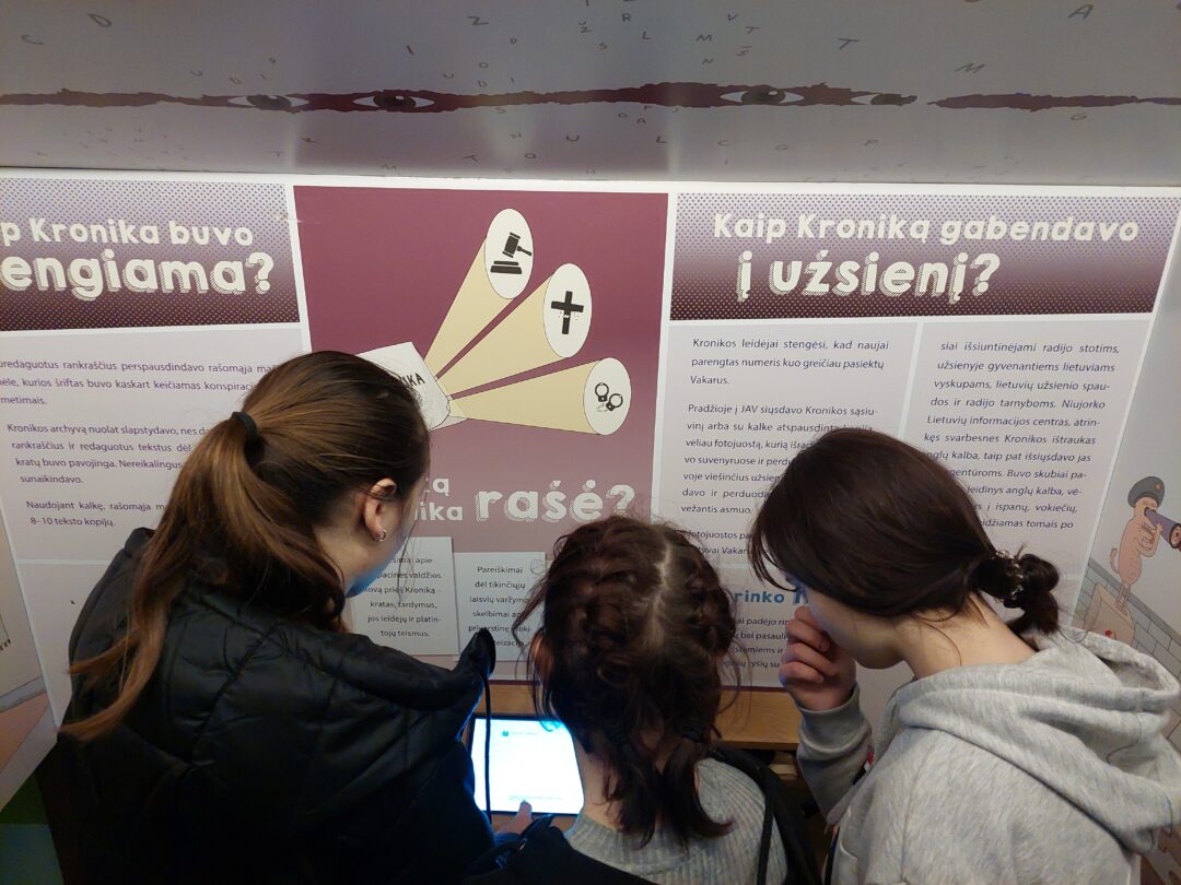Kai kurių mokyklų klasės dalyvavo gyvuose susitikimuose su žmonėmis, kurie tame pogrindyje leido kroniką, iš pirmų lūpų klausėsi istorijų, kaip apgaudavo saugumiečius, taigi ši tema visus šiuos metus ataidi mokyklose. Paroda – tarsi staigmena, žadinanti smalsumą. Muziejus turi norą, intenciją ateiti pas moksleivius ir megzti dialogą. Paroda padėjo pasiekti tikslą ir priartėti prie moksleivių, rasti bendrą kalbą. Esame dėkingi mokykloms, kad taip pozityviai pažvelgė į šią idėją.