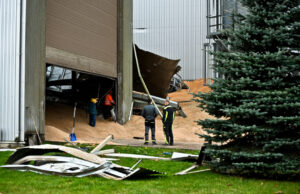 Nugriuvo grūdų saugykla
