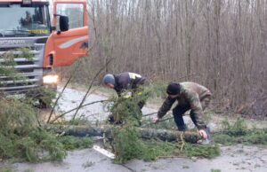 Stiprus vėjas visą naktį ir rytą neduoda ramybės gyventojams: skraido šiukšlės, laužomos šakos, plėšomi stogai. Su problema susidūrė ir keliaujantieji keliu Kamajai–Duokiškis – ryte...