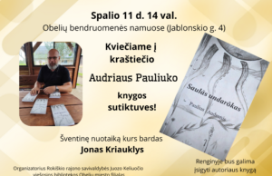 Spalio 11 d. 14 val. Obelių bendruomenės namuose (Jablonskio g. 4) kraštiečio Audriaus Pauliuko knygos sutiktuvės.