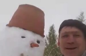 Sniego senis, papuoštas pavasario gėlėmis, užklydo ir į Tomo Didžiulio kiemą.