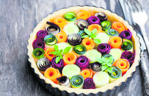 Spalvingas cukinijų ir morkų „rožių“ pyragas