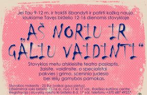 Jei Tau 9-12 m. ir trokšti išbandyti ir patirti kažką naujo, laukiame Tavęs birželio 12-16 dienomis stovykloje „AŠ NORIU IR GALIU VAIDINTI“
