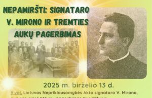 9.00 val. - Lietuvos Nepriklausomybės Akto signataro V. Mirono...