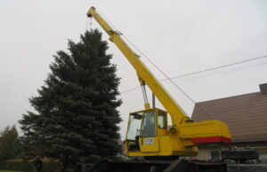 Apie 10 metrų aukščio išrinktoji gražuolė – sidabrinė eglė - augo Ritos Sanvaitienės kieme. Šiandien iš pat ryto AB „Rokiškio komunalininkas“ darbininkai darbavosi pjūklu...