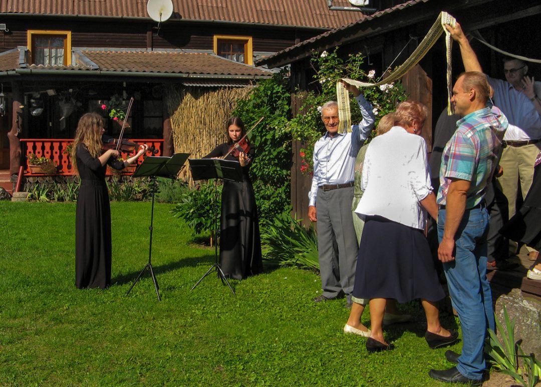 Griežiant dviem smuikams (Rokiškio muzikos mokyklos mokytojai Oksanai Sadauskienei ir jos mokinei), skambėjo kompozitoriaus J. Pachelbel kūrinys „Canon in D“. Aidint šiai iškilmingai muzikai, bendraklasiai žengė pro tautines juostas į jubiliejui papuoštą salę: paženklintą 50-ies metų auksiniu skaičiumi, šilumą ir gėrį skleidžiančiomis žvakutėmis, auksinėmis rožėmis papuoštomis servetėlėmis ir baltomis rudens gėlių puokštėmis, primenančiomis pasidabruotų mūsų visų smilkinių išmintį.