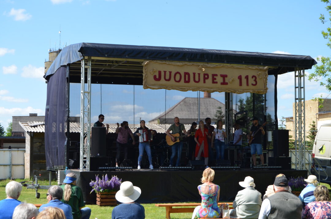 Šeštadienį prieš pietus jaunieji juodupiečiai pakviesti gilintis į robotikos pasaulį, o miestelio parke rinkosi visos seniūnijos gyventojai pasiklausyti šlagerių, atliekamų Naisių vasaros teatro. Žmonės vieni kitų klausinėjo, ar parke vis dar reikia dėvėti apsaugos kaukes, stengėsi nesispiesti į būrį. Juolab kad ir vietos klausytojams buvo į valias, ir oras pasitaikė puikus sėdėt ne tik ant suolų, bet ir ant pledų pievelėje. Organizatoriai parke padėjo dezinfekcinio skysčio ir apsaugos kaukių, bet žmonės jas traukė iš savo rankinių ir kišenių.