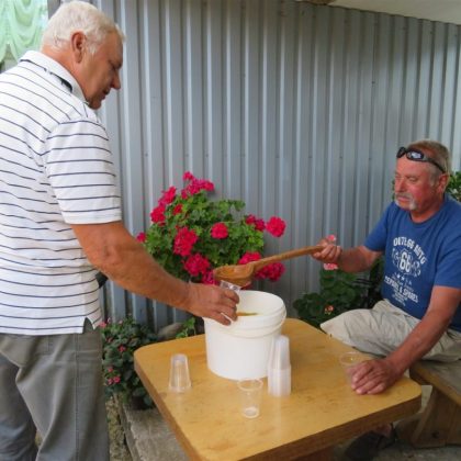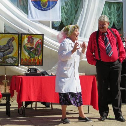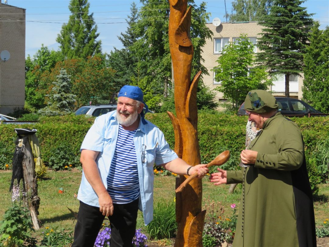Tautodailininkas, medžio drožėjas Vidmantas Zakarka sukūrė ūgio matuoklę – saulėgrąžą. Ant jos lapų išraižytos vykusių „Jonvabalio“ švenčių datos. Ši medžio skulptūra – festivalio idėjos tęstinumas, mat kultūros centro kieme, be saulėgrąžos, stovi V. Zakarkos sukurtas jonvabalis bei suolelis. Drožėjas atvežė organizatoriams dovanų – didžiulį samtį. Nijolė Čirūnienė, viena šventės organizatorių, bandė jį priderinti ir užkišti už saulėgrąžos skulptūros lapų, tačiau visgi nuspręsta jį panaudoti pagal paskirtį – į stiklinaites pilstyti gaivą.