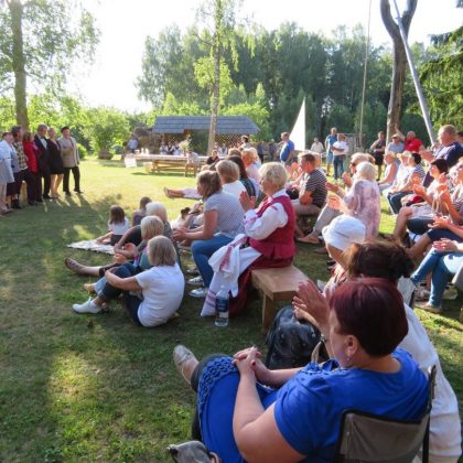 Šventės pradžioje vedėja D. Janulienė pakvietė žiūrovus uždegti šalia tako išdėliotus trispalvius žibintus. Prie jų derėjo iš beržo tošies pagaminti maži laiveliai, kurių stiebų viršūnėse pritvirtintos mažos trispalvės vėliavėlės. Kieme šeimininkų lėlių teatras „ČIZ“ rodė specialiai Dainų šventei sukurtą veiksmą „Vargšas ir besotis“ (pagal Vydūną).