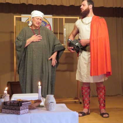 Straipsnio autorės žiniai Hanos Stanislavosa Šumilaitės režisuoto spektaklio veiksmas vyko senovės Romoje, ne Graikijoje. Juk ten buvo kalbama apie 3 nukryžiuotuosius…