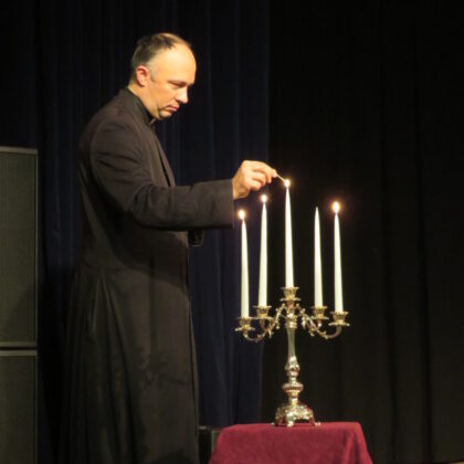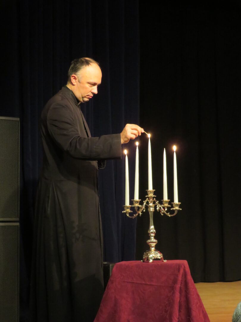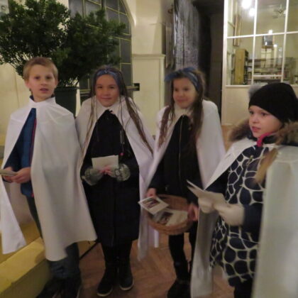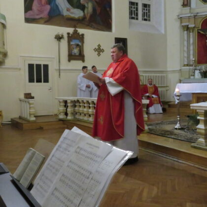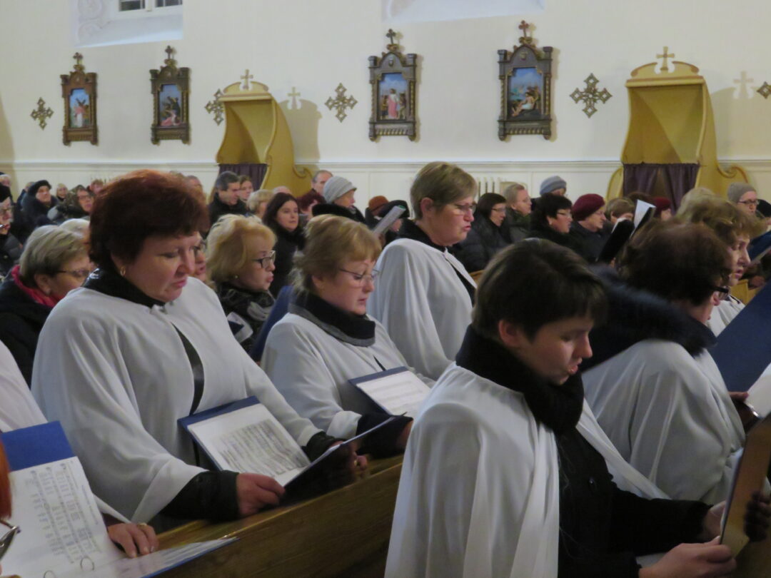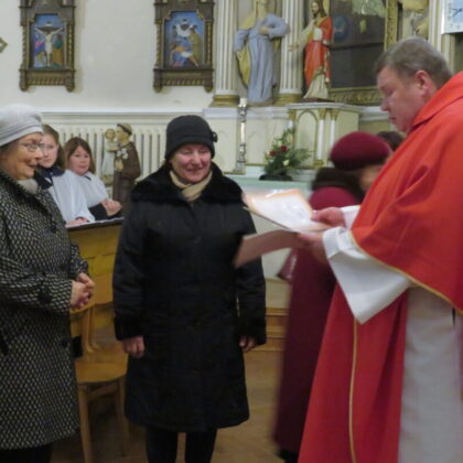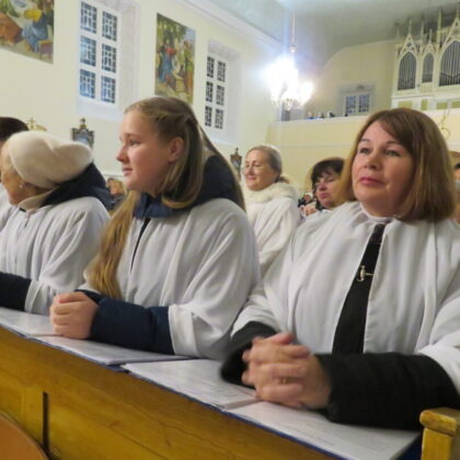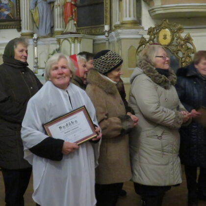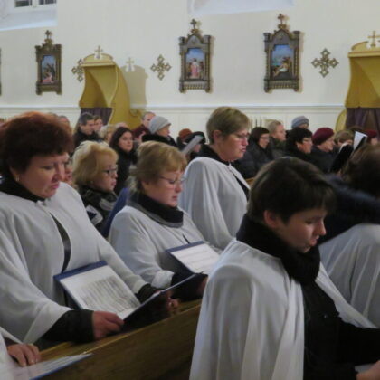 Vėjuotą ir žvarbų rudens vakarą bažnyčioje buvo jauku – vos įžengusius į vidų sveikino vaikai, įteikdami po šventinį atviruką. Tikintieji galėjo žavėtis giedojimu ne vieną valandą, nes prieš šv. Mišias choristai skyrė laiko bendrai repeticijai.