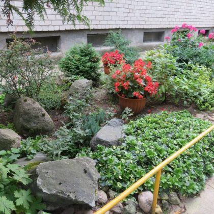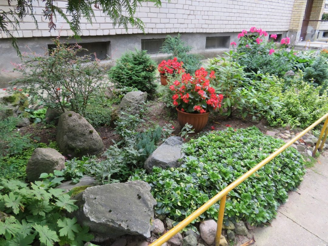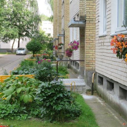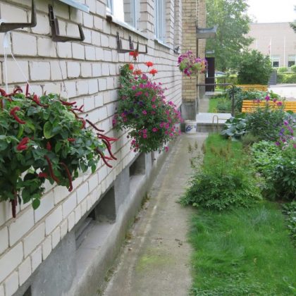 Daugiabučio puošmena – ryškiaspalvės gėlės
