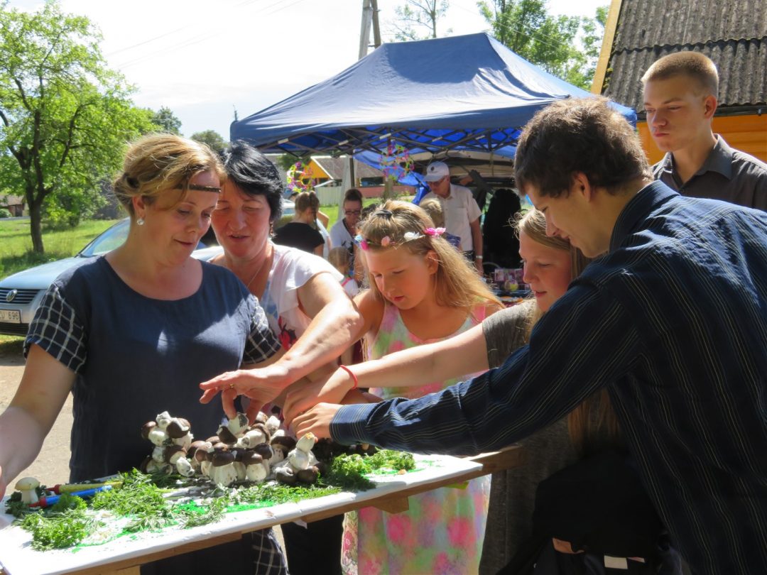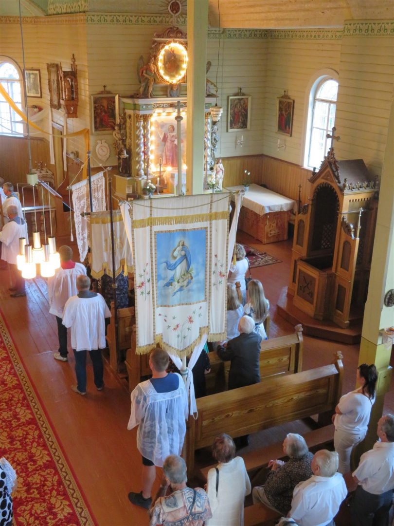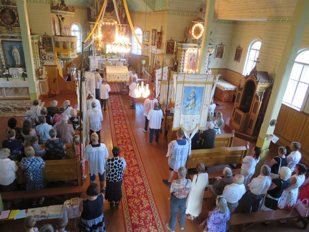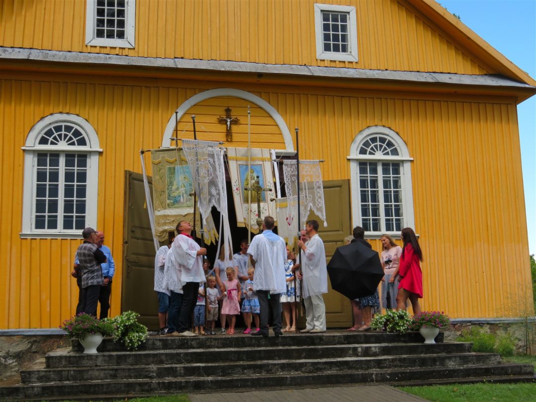 Renginys planuotas po atviru dangumi, tad organizatoriams gerokai nervus patampė staiga prieš pat šventę užklupusi liūtis. Tačiau ji mažai jaudino dalyvius – jie tuo metu dalyvavo pamaldose. Lietus buvo toks smarkus, kad medinės bažnytėlės viduje vos girdėjosi šv. Mišias aukojusio parapijos klebono Povilo Juozėno balsas. Gamtos stichija liovėsi tik prieš pat iškilmingą procesiją aplink bažnyčią, o visiems renkantis į „Kazlėkinę“ prie kultūros centro, nušvito saulė.