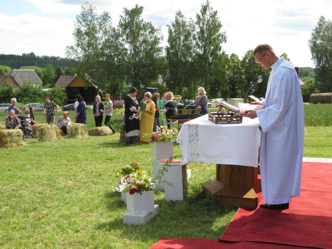 Nuostabus oras, vietoje suolų – gėlių puokštelėmis papuošti kvepiančio šieno spudulai, šalia – vėjo banguojamas javų laukas. Visa tai kūrė nepakartojamą šventės atmosferą.