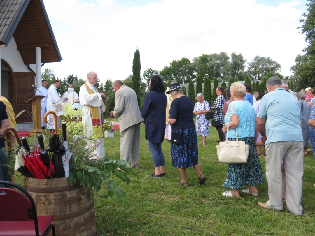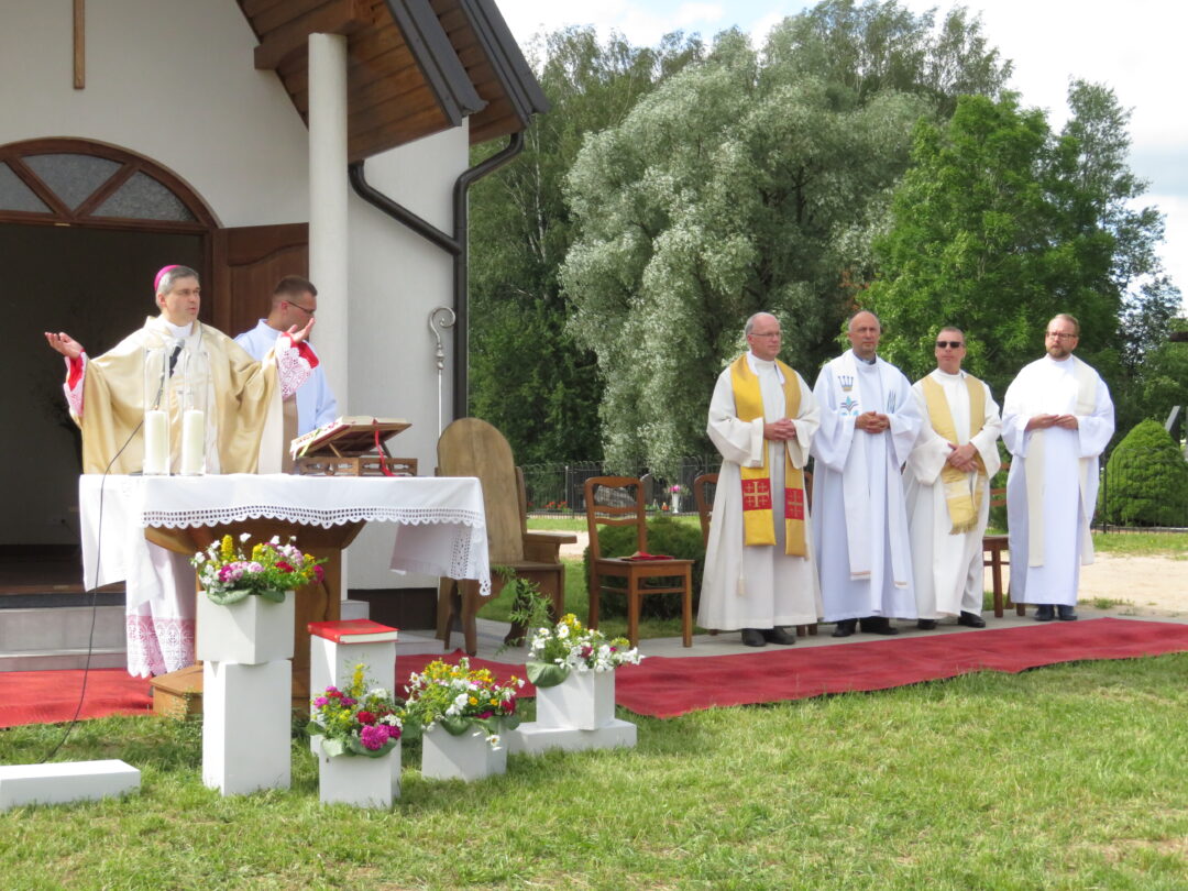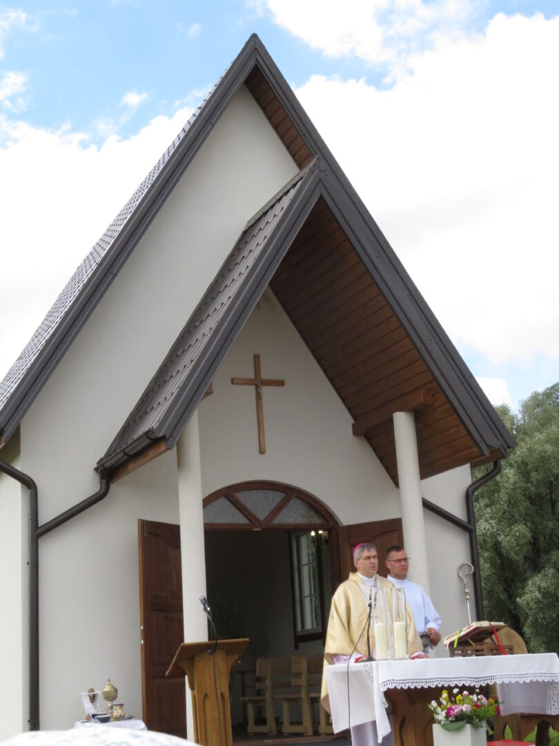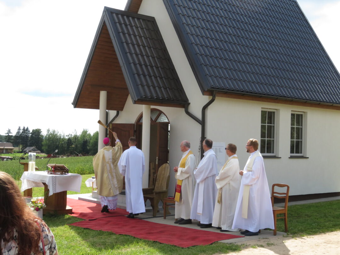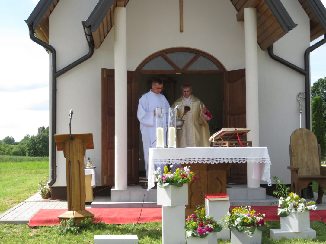 Iškilmės prasidėjo šv. Mišiomis koplyčios priešakyje. Jas aukojo Panevėžio vyskupas Linas Vodopjanovas OFM, talkino generalvikaras Eugenijus Styra, Kamajų parapijos klebonas Andrius Šukys, Rokiškio Šv. apaštalo evangelisto Mato bažnyčios vikaras Dainius Matiukas, Pandėlio parapijos klebonas Albertas Kasperavičius, giedojo Kamajų bažnyčios vokalinis ansamblis. Vyskupas linkėjo parapijai ir bendruomenei garsėti pamaldumu, geru žodžiu ir darbais, dėkojo už ryžtą ir atliktą darbą.