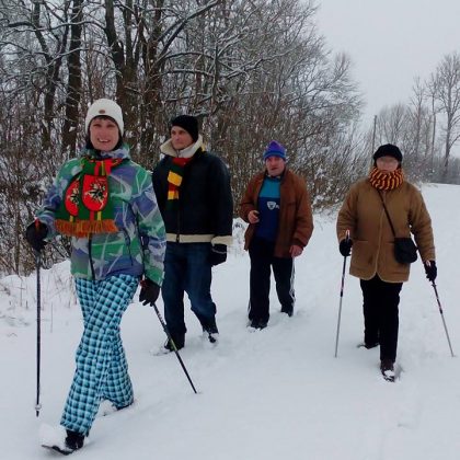 Bendruomenės pirmininkės Romualdos Kvedaravičienės suburti į žygio grupę, sausio 27-ąją startavome ir pusnynais nužygiavome 8 km. Iš viso surengėme devynis žygius, iš kurių du peržengė seniūnijos ribas. Prisidėjome prie Kovo 11-osios rajone organizuoto 20 km žygio, išbandėme jėgas 13 km keliaudami Rubikių ežeru (Anykščių r.).