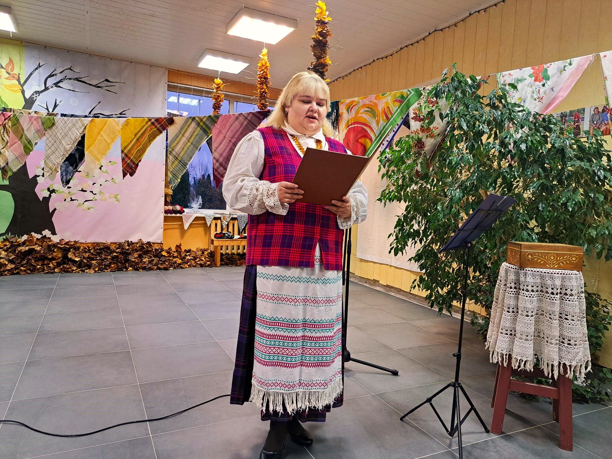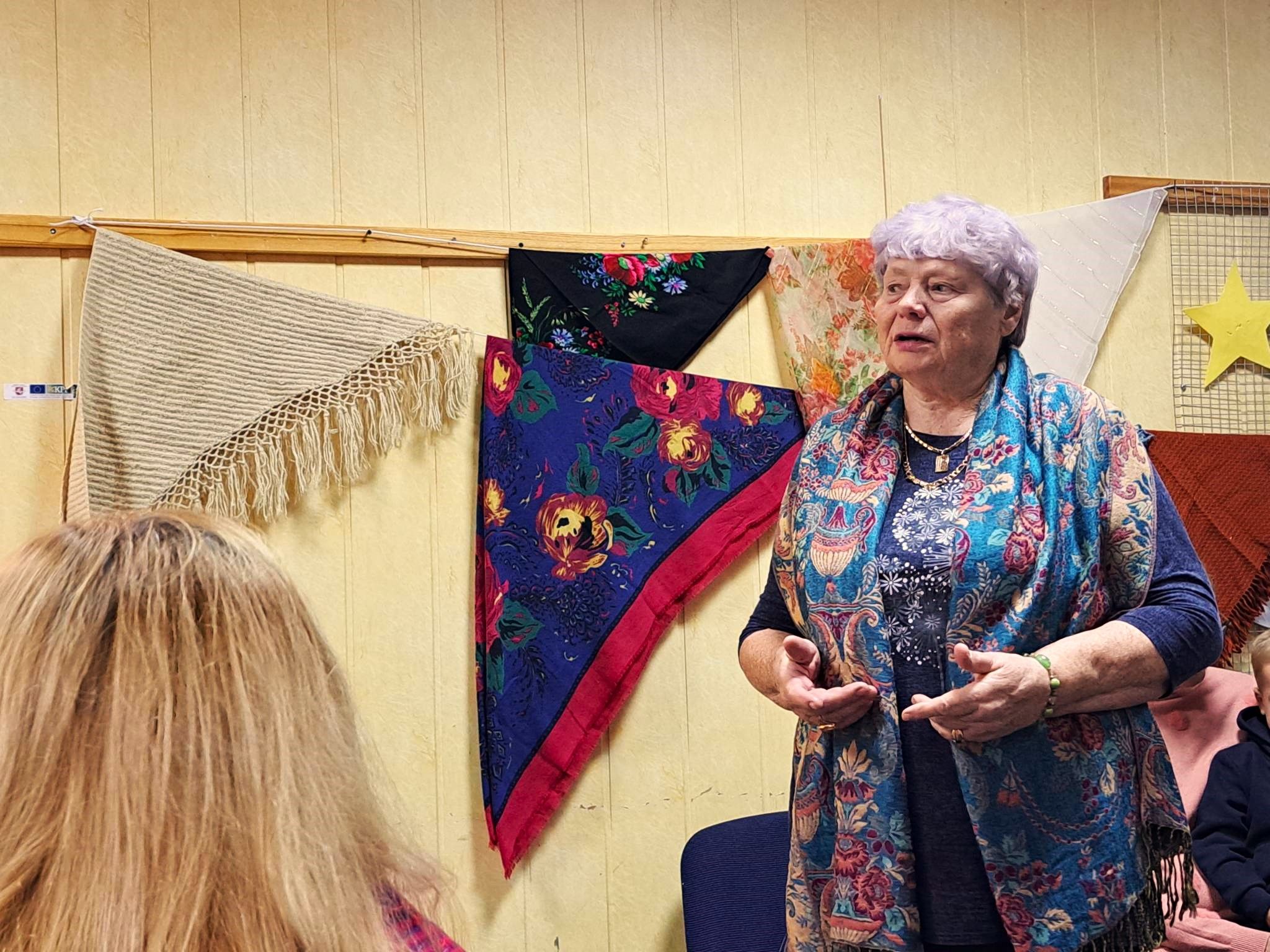 Iš tiesų – skarelės, kaip garderobo dalis, jau baigia išeiti iš mados. Reta kuri netgi vyresnio amžiaus moteris jas rišasi ant galvos. Jaunesnės nebent apsiriša kaklą ar apsisiaučia, kad nebūtų šalta. Parodoje skarelės – šeimų istorijų pasakotojos. Vietinės ir kitur gyvenančios moterys jų atnešė net 172.