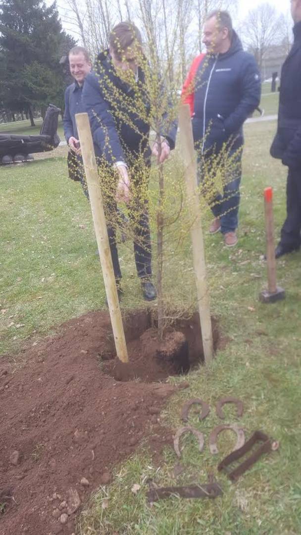 „Tvarkiečių“ pasodintas maumedis – ypatingas: kasant jam duobę rasta pasagų, žadančių santarvę ir gerovę. E. Vilimo nuotr.