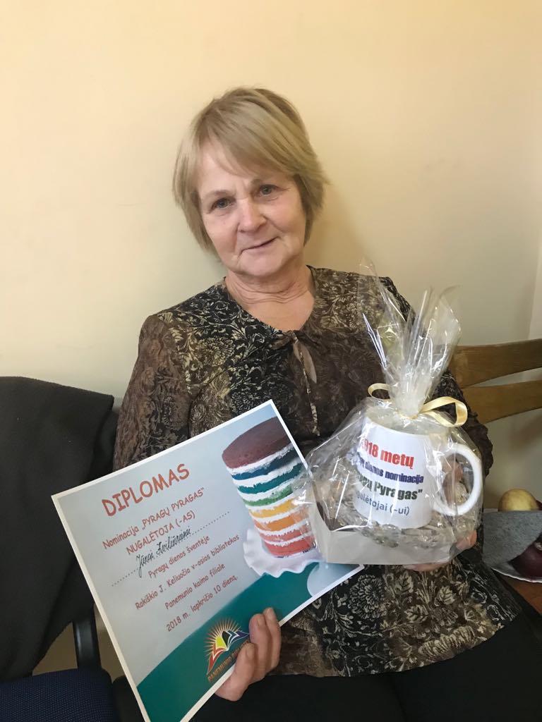 Susipažinome su dviem J. G. Degterenkienės knygomis, skaitėme eiles iš jų, artimiau pažinome pačią kūrėją, jos gyvenimo ir kūrybos vingius. Šiek tiek nostalgišką ir ramią nuotaiką keitė vis linksmesni nuotykiai ir pasakojimai, nes gerb. Jūratė ne tik eiles rašo, bet ir anekdotus eiliuoja, yra dalyvavusi televizijos projektuose „Juoko kovos“ ir laimėjusi prizines vietas, todėl ne veltui susirinkusieji leipo juokais nuo jos pasakojimų. Prie puikios ir linksmos nuotaikos prisidėjo ir Virginijaus Venciulio vadovaujamas Panemunio saviveiklininkų vokalinis ansamblis, dovanojęs muzikinius kūrinius ir kvietęs dainuoti kartu. Po pirmosios programos dalies skubėjome prie išradingų ir kvepiančių pyragų. Buvo pristatyta renginio degustavimo komisija, kuriai pirmininkavo Inga Žiaugrienė. Komisijai teko sunki užduotis – išragauti 21 pyragą ir išrinkti šešių nominacijų, kurių pagrindinė buvo „Pyragų pyragas“, laimėtojus. Visi šventės dalyviai, ragaudami skanėstus, rinko „Šventės dalyvių simpatijos“ nominaciją. Pyragai buvo sužymėti numeriukais ir jų kepėjai išliko konfidencialūs, o tai kėlė intrigą. Pagrindinę nominaciją laimėjo Jūra Kviliūnienė. Kaip sakė pati šeimininkė, ne veltui kėlėsi 4 val. ryto, rūpestingai maišė tešlą ir kruopščiai kepė skanėstą. Susirinkusieji neskubėjo skirstytis, nes visiems buvo gera pabūti kartu, pabendrauti ir leisti šeštadienio popietę bibliotekoje.