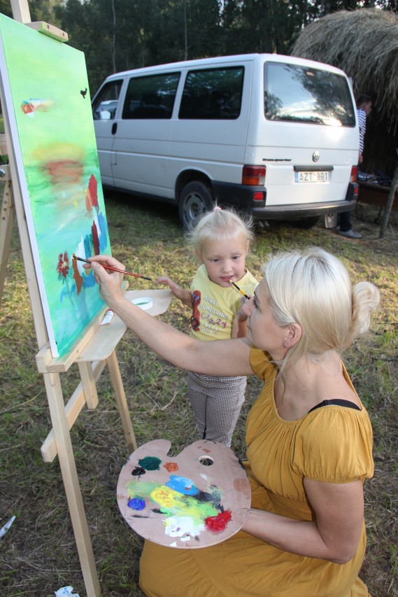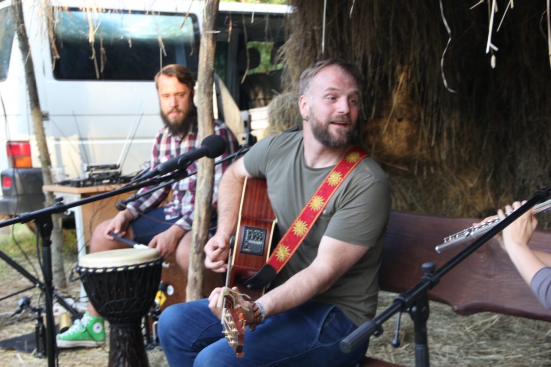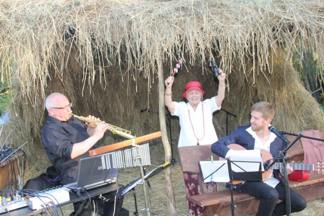 Vakaro improvizacijos prie garuojančios arbatos puodelio “Arbatos” grupės muzikantas Andrius Zalieska – Zala prisipažino, jog jis pirmąjį kartą grojo tokioje neįprastoje aplinkoje – sceną muzikantams atstojo šieno kupeta.