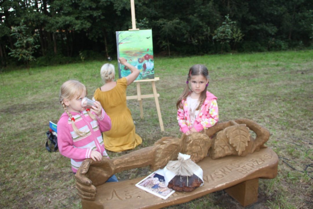 Šalia paminklinio akmens P. Širviui pastatytas medinis suolelis. Jį išdrožęs skulptorius Gintaras Varnas siekė visus poezijos mylėtojus apkabinti beržo šaka… Prie suolelio vyko pirmieji poezijos skaitymai. Išvykstantys iš poeto tėviškės vylėsi, kad kūrybos suolelis stovės ilgai, niekas jo neišsineš, nesudegins…