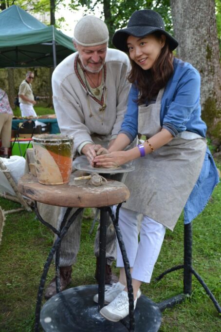 E. Hincas – tradicinio amato meistras, atradęs edukacinę veiklą. „Mano namuose atsirado autentiškos molio žiedimo staklės. Jos dažnas mano kelionių palydovas. Nuoširdžiai stebiuosi kitų sugebėjimu „nieko neveikti“, – kalbėjo menininkas.