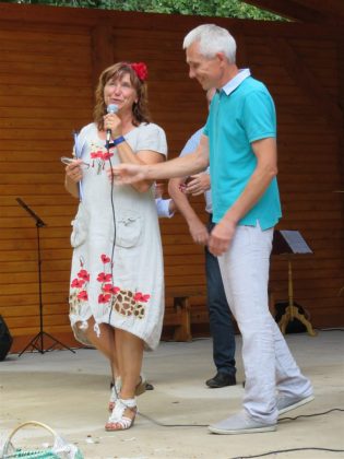 Estrada atidaryta irgi šventiškai: renginio vedėja Dalia Ziemelienė ant scenos sukvietė buvusius kultūros darbuotojus Zosę Gindvilienę ir Ričardą Balčiūną, projekto sumanytoją, bendruomenės pirmininką Arvydą Šapoką, seniūnę Dalią Janulienę, seniūnaitį Karolį Streikų ir patikėjo jiems perkirpti įkurtuvių juostelę bei iššauti spalvingus konfeti.