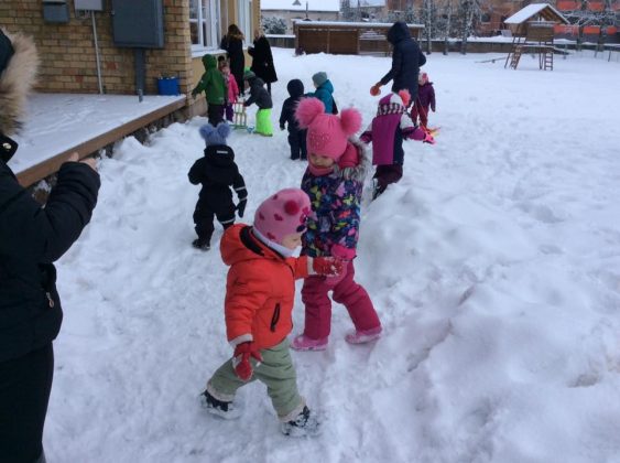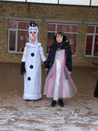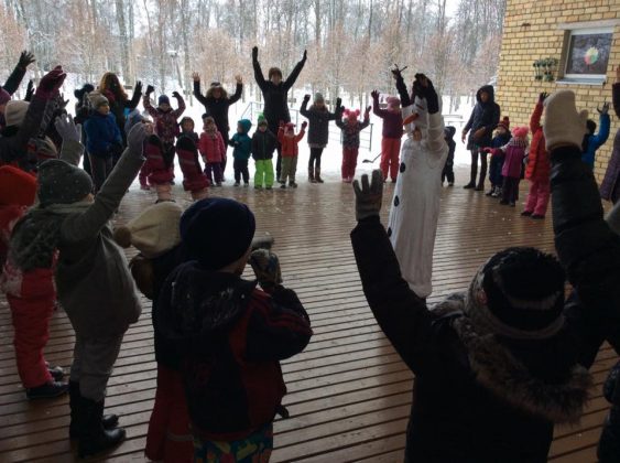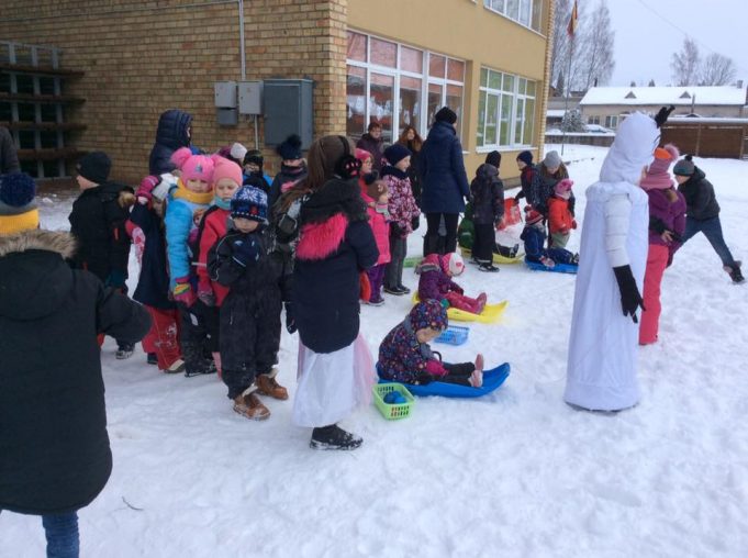 Po lietingos dienos oras maloniai nustebino, buvo tikrai žiemiškas. Dalyviai pasisveikino su renginio personažais Olafu ir Elza. Jie vaikus pakvietė pramankštinti ir rankas, ir kojas, po to susiskirstę komandomis visi rungtyniavo linksmose estafetėse: šluota varėsi kamuolį, vežiojo vieni kitus vienas kitą rogutėmis, vaikščiojo po sniegą susikabinę „traukinuku“. Šventę užbaigė piešiniais ant sniego.