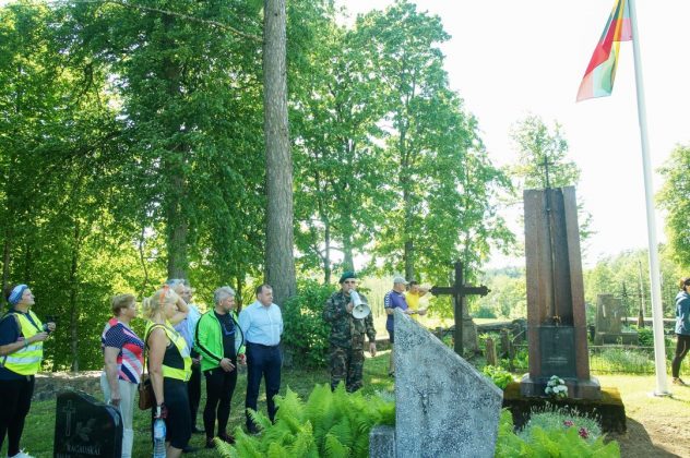 Iš Aleksandravėlės leidomės Zarasų rajono Antazavės seniūnijos gražiomis vietomis. Žygio dalyvius globojo Zarasų ir Rokiškio policijos rėmėjai, jiems talkininkavęs Zarasų krašto patriotas Rimantas Jurevičius – šių vietų žinovas ir gidas – išsamiai papasakojo apie Kumpuolių, Maniuliškių apylinkių paminklus, menančius laisvės kovų istoriją.