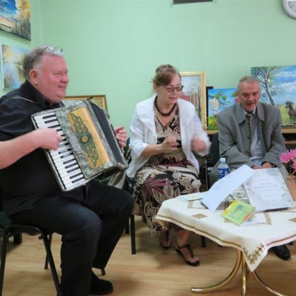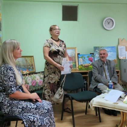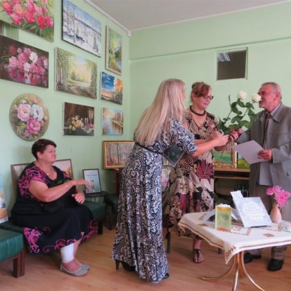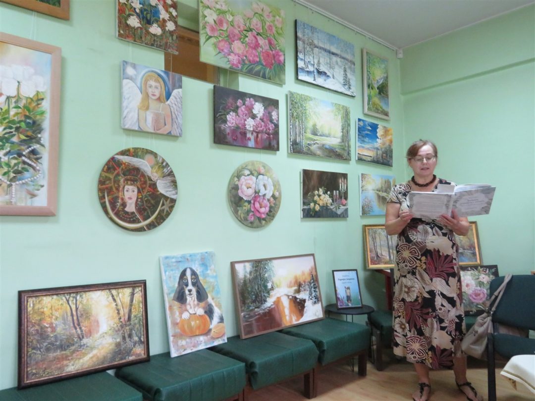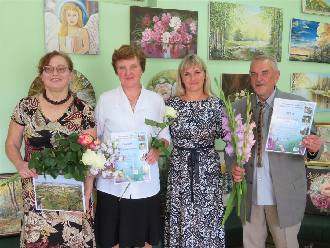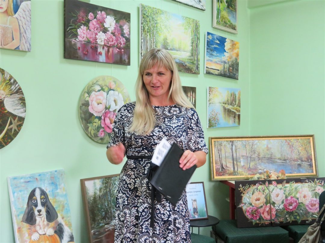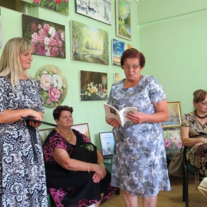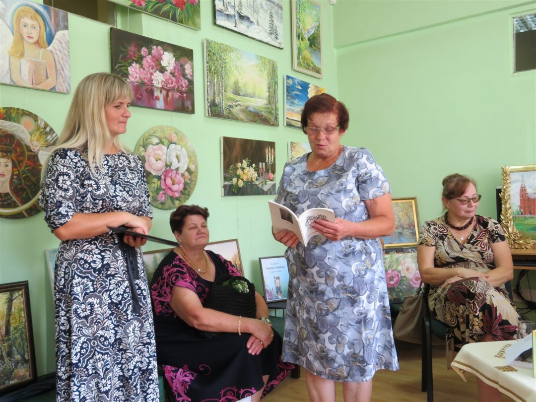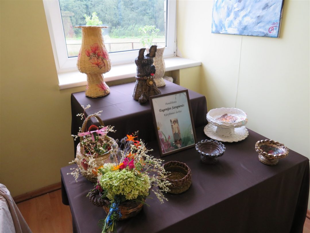 Pristatyti ir kitų kūrėjų darbai: panemunietės Rasos Palivonienės mezginių, pandėliečių Židrės Skaburskienės iš karoliukų vertų medelių ir Eugenijos Sarapienės tapytų paveikslų. Pastarosios autorės paveikslai užėmė kone visą bibliotekos sieną. Juose – peizažai, natiurmortai, portretai, religinės tematikos motyvai. Taip pat bibliotekoje veikia tautodailininkės Birutės Dapkienės paveikslų paroda. Susitikimą su kūrėjais vedė Panemunio bibliotekininkė Elena Baronienė.
