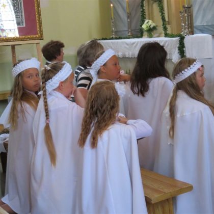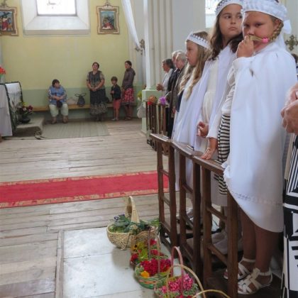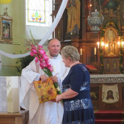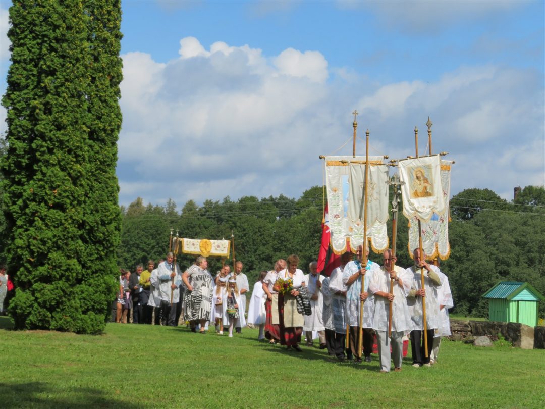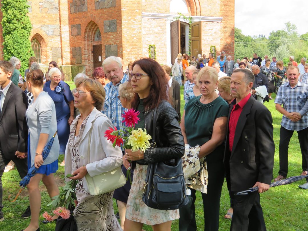 Iš bibliotekos šventė persikėlė į Panemunio Švč. Trejybės bažnyčią, kurioje vyko Žolinės atlaidai. Šv. Mišias aukojo klebonas Albertas Kasperavičius, darniai giedojo jungtinis Pandėlio, Panemunio ir Skapiškio (Kupiškio r.) parapijų choras. Po šv. Mišių parapijos tikintieji sveikino kleboną – jis į šią parapiją buvo paskirtas lygiai prieš metus.
