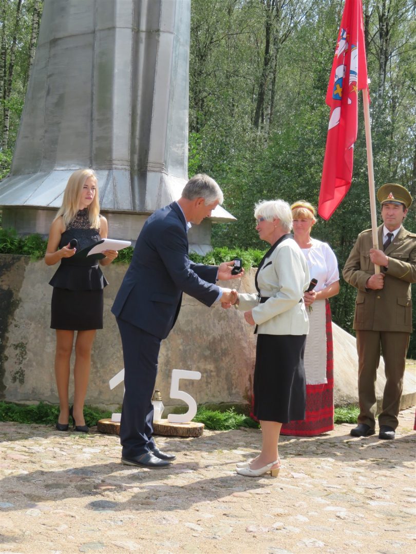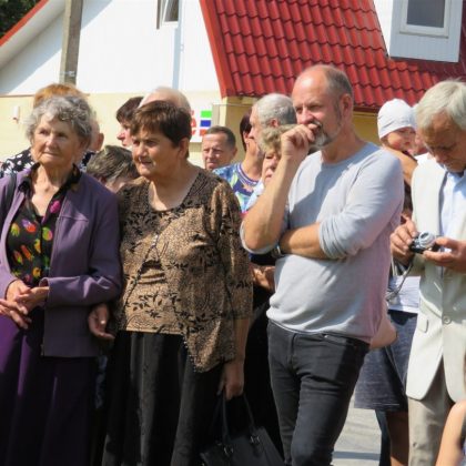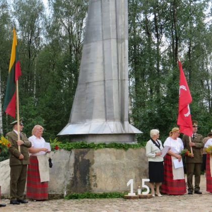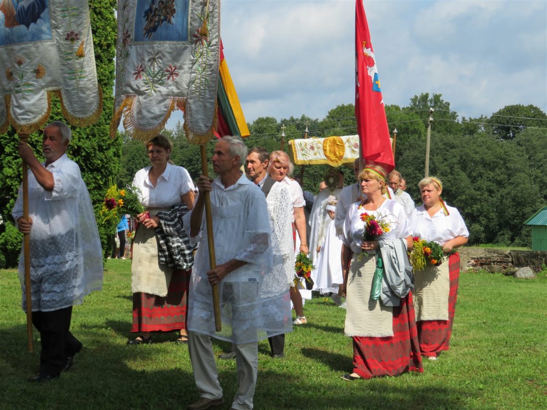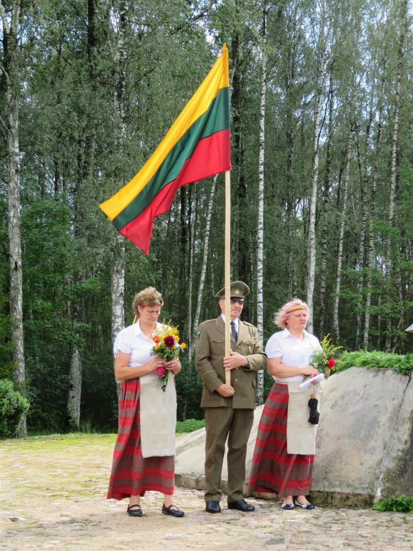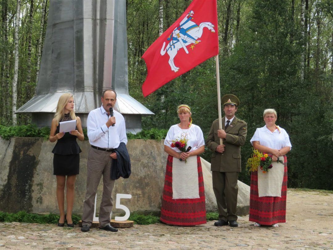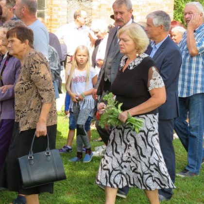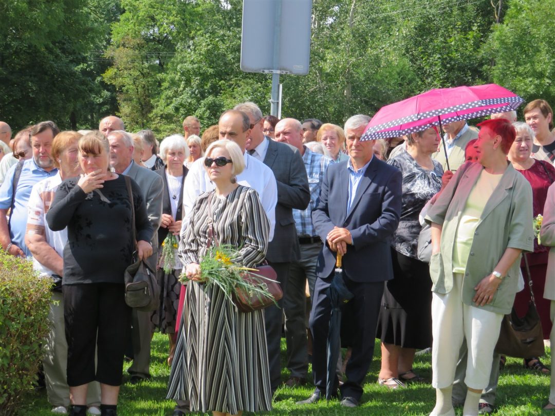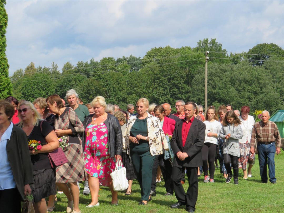 Iš pilnutėlės bažnyčios iškilminga eisena pasuko prie paminklinio akmens miestelio centre. Eisenos priekyje žengė baltai apsirengę, stilizuotus angeliukus nešantys vaikai, tautiniais drabužiais pasidabinusios moterys, vėliavas nešė šauliai.
