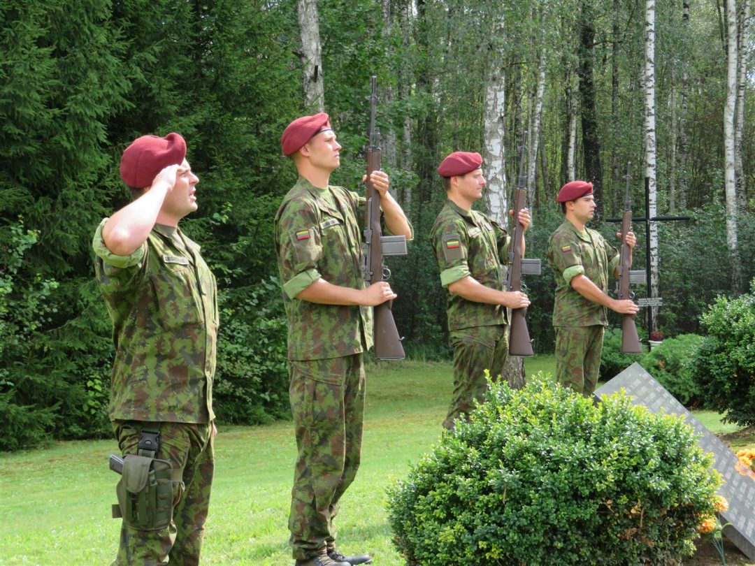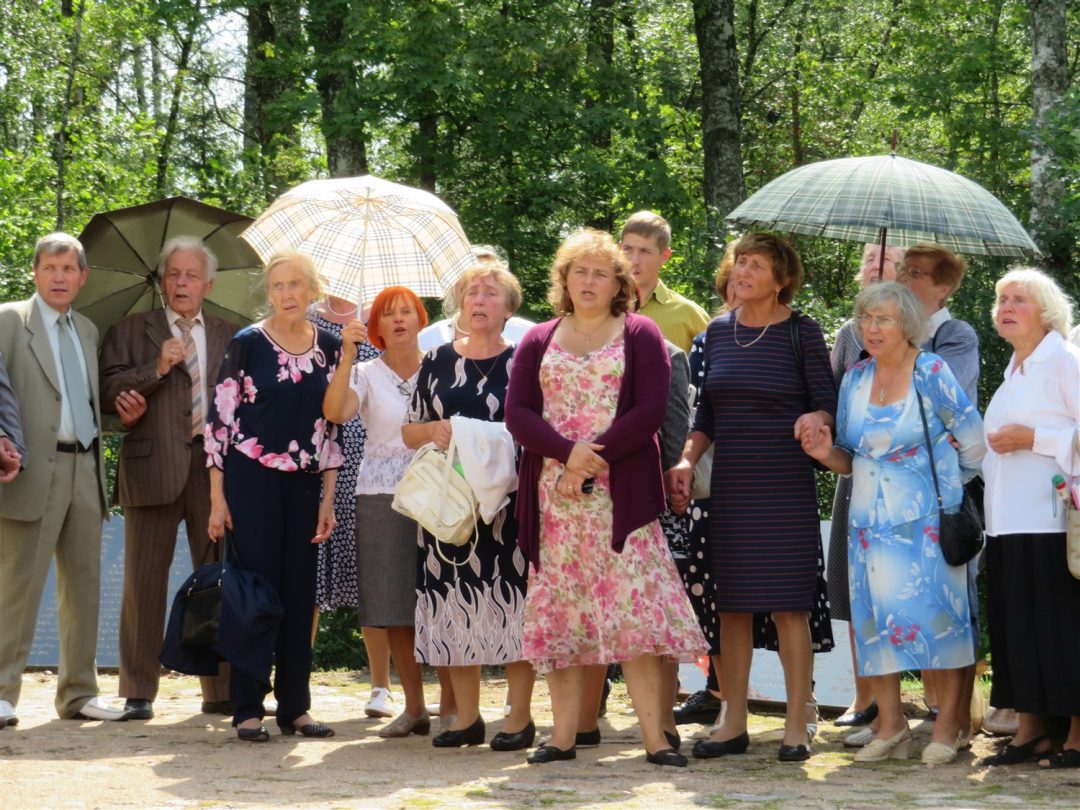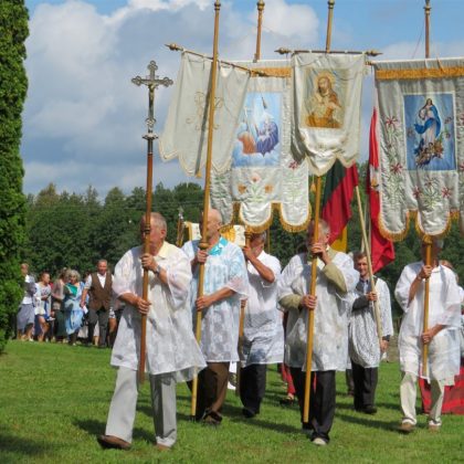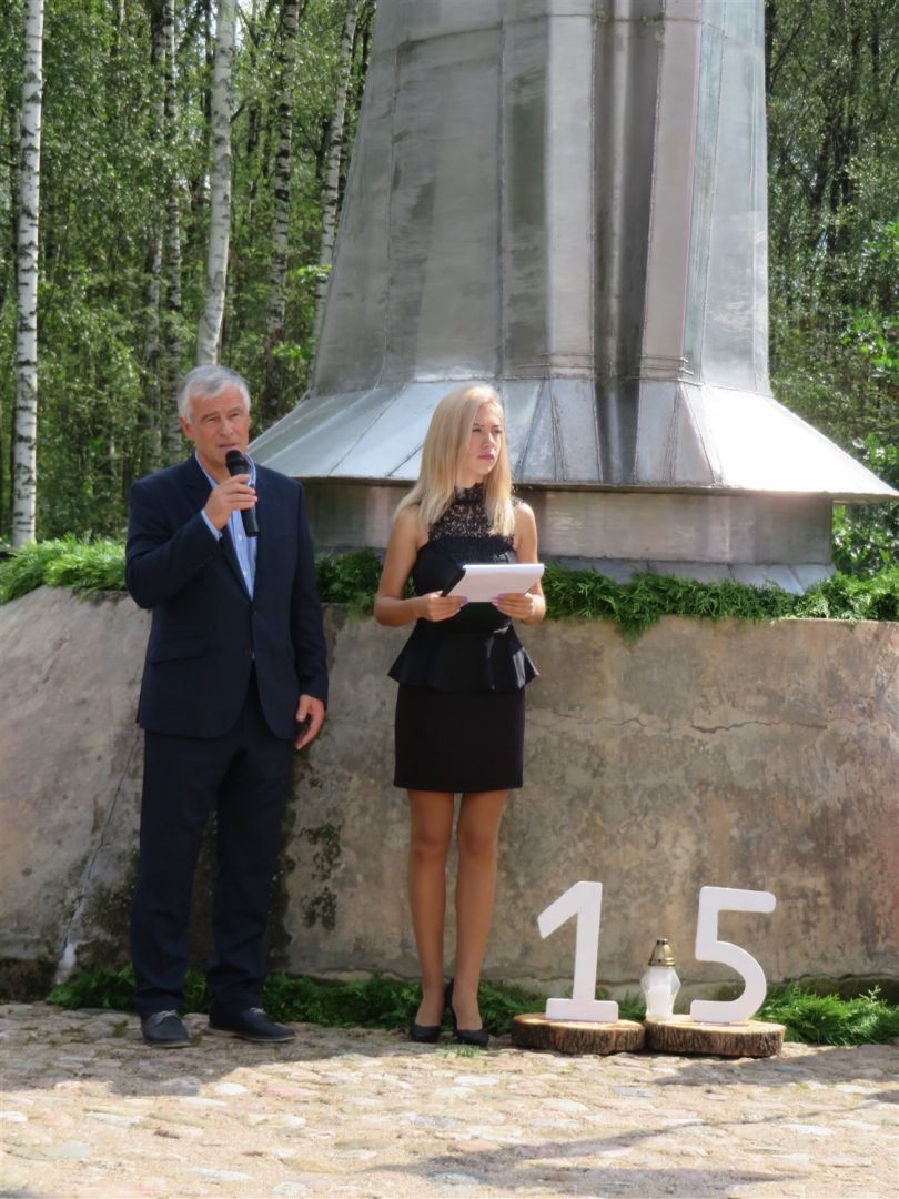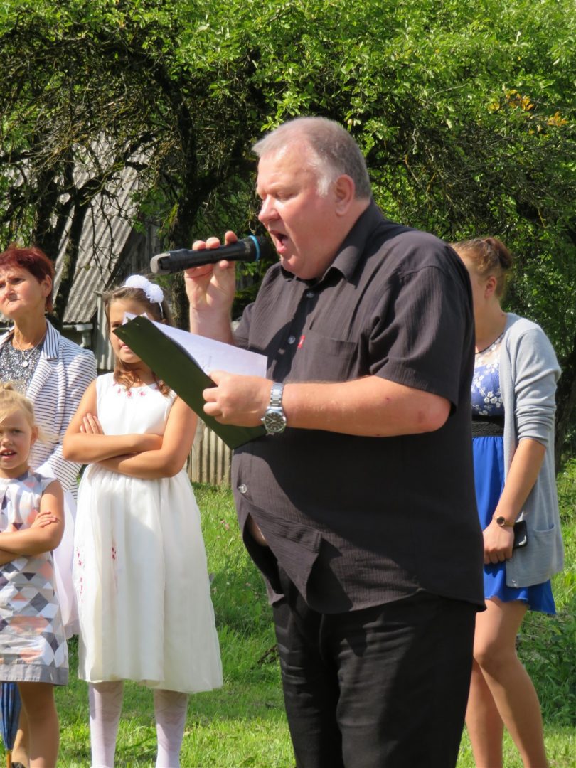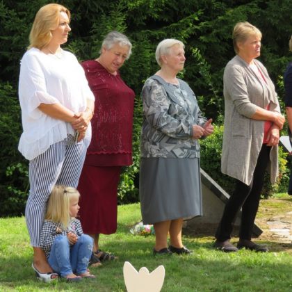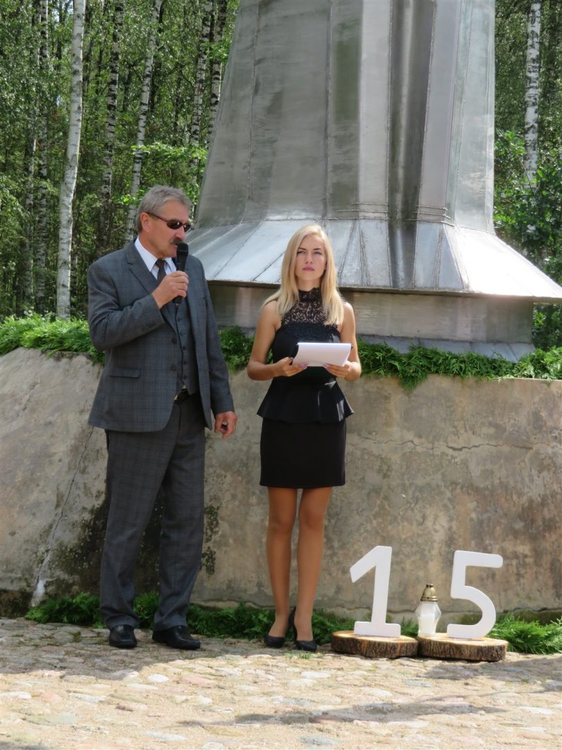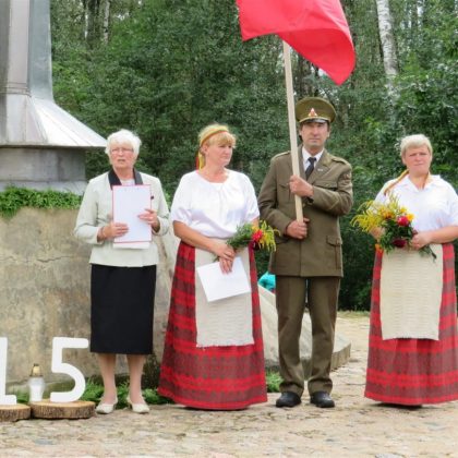Iš pilnutėlės bažnyčios iškilminga eisena pasuko prie paminklinio akmens miestelio centre. Eisenos priekyje žengė baltai apsirengę, stilizuotus angeliukus nešantys vaikai, tautiniais drabužiais pasidabinusios moterys, vėliavas nešė šauliai.