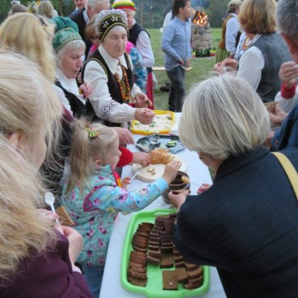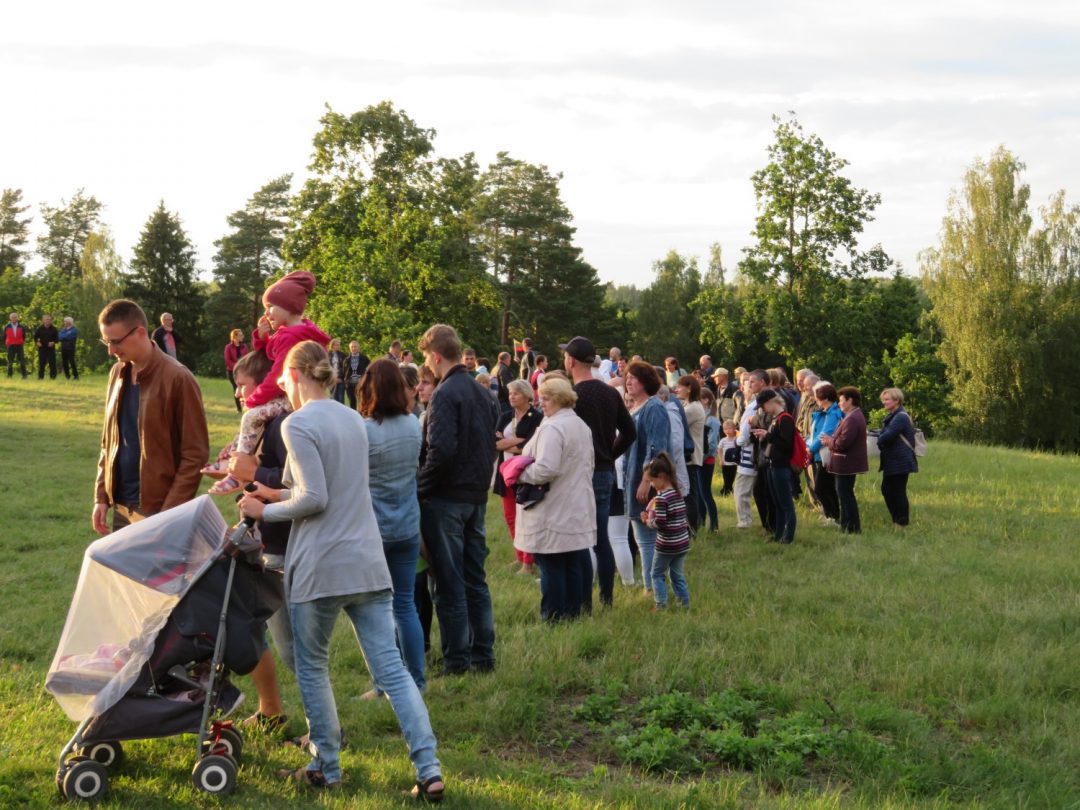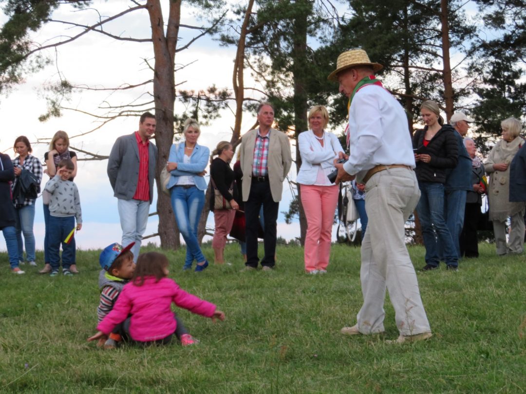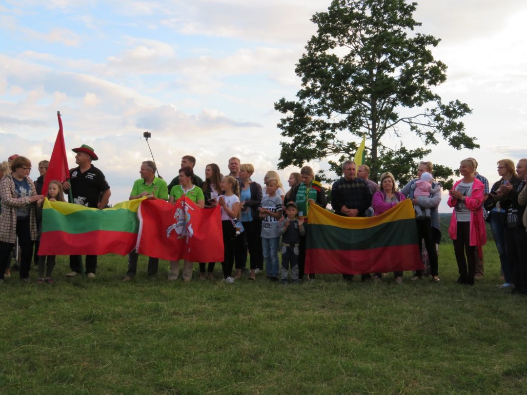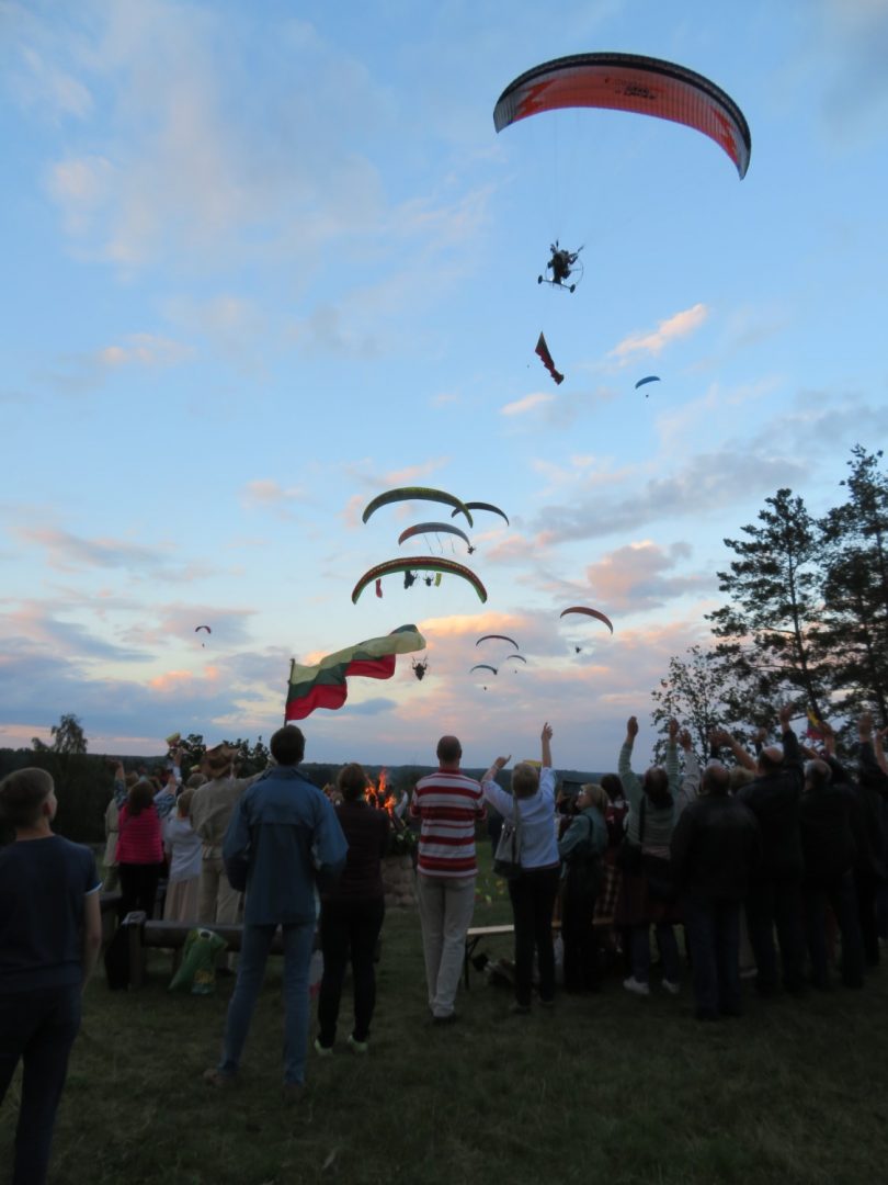 Gausiai susirinkusius rokiškėnus, gretimų apylinkių žmones, pas giminaičius atvykusius užsienio lietuvius skrydžiu virš piliakalnio pasveikino Rokiškio sporto klubo „Pūga“ parasparnininkai. Išskleidę keletą Trispalvių, jie apsuko ne vieną ratą ir tapo vakaro staigmena. Vėliau susirinkusieji vakarojo prie užkurto aukuro, o šventės vedėja Danutė Kirstukienė kvietė prie stalo ragauti šviežio medaus, duonos, sūrio.