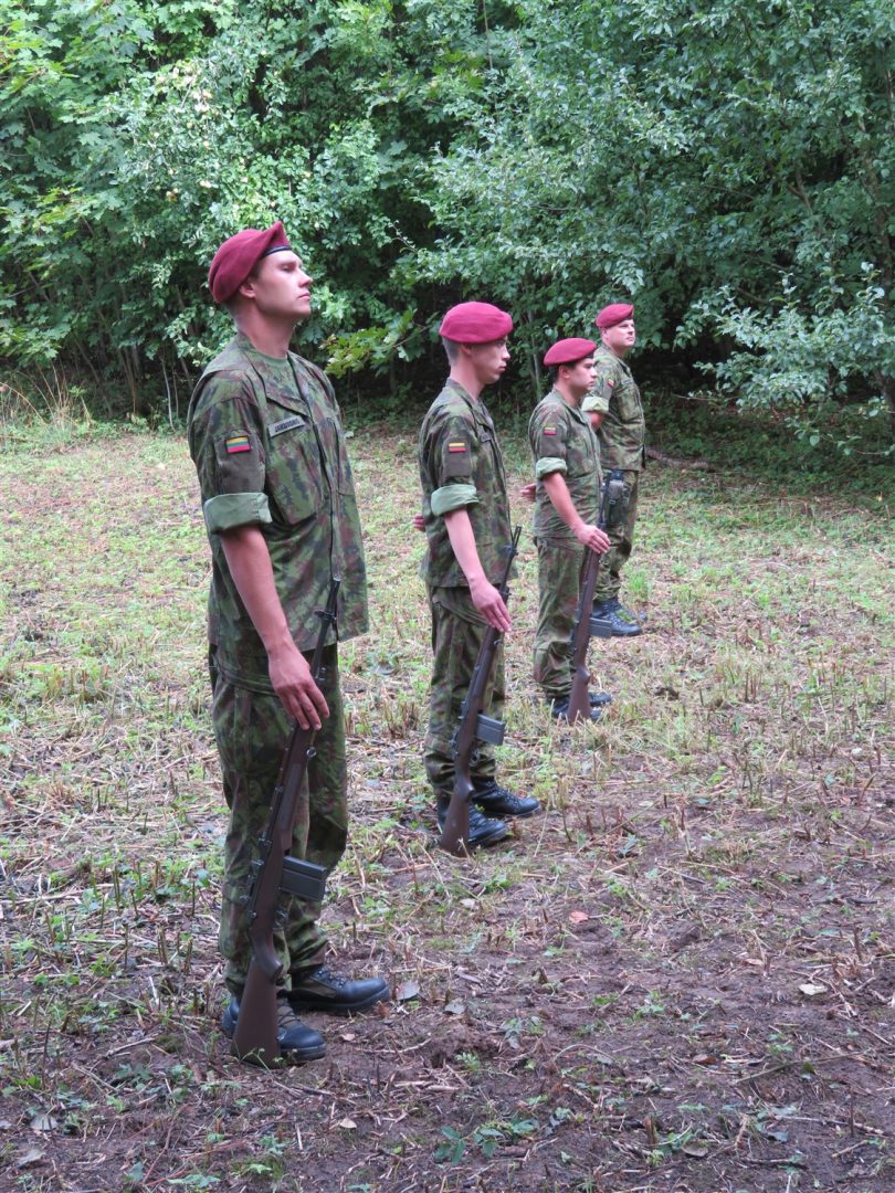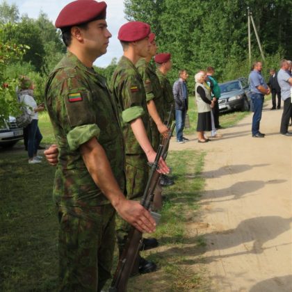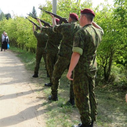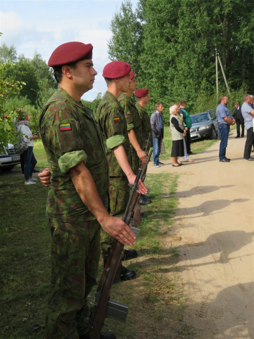 Partizanų atminimas pagerbtas krašto apsaugos savanorių garbės salvėmis, uždegtos žvakelės, padėta gėlių.