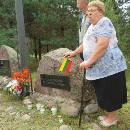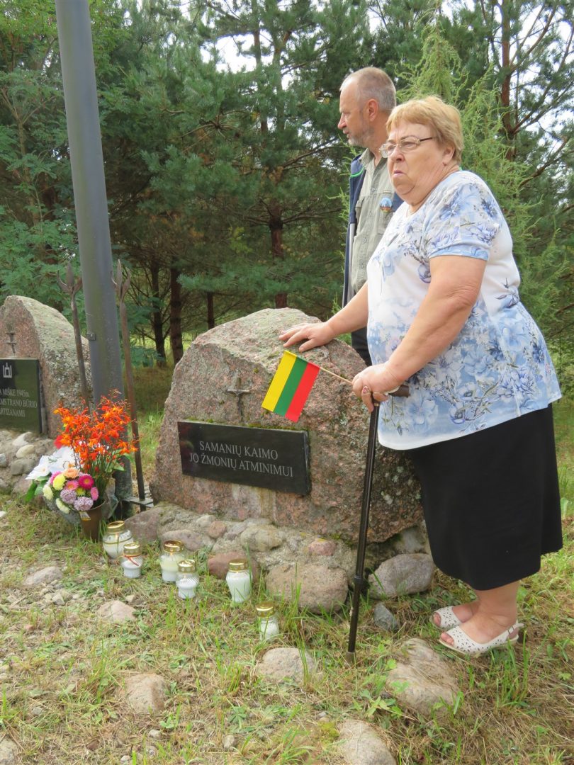 Toliau automobilių kolona pajudėjo Samanių kaimo link, kur 1945 m. miške žuvusius Trano būrio partizanus mena aukštas kryžius ir paminklinis akmuo, pastatyti 2011 m. Prie jo kalbėjo buvęs partizanas, atminimo įamžinimo iniciatorius Gediminas Dopkevičius. Jam kilo mintis pastatyti paminklą, kai Trano žūties vieta atsidūrė žvyro karjero teritorijoje. Į renginį atvyko Trano dukra Nijolė Tranaitė-Monkevičienė, dabar gyvenanti Joniškyje. Jos atmintyje – tik atsiminimų nuotrupos, nes suaugusieji slėpė nuo vaikų informaciją apie partizanus, kad mažieji kartais neišplepėtų pašaliniams. Jai teko augti pas tetą Antaniną Kumševičienę Lukšių kaime, nes mama, partizanų ryšininkė, aštuoneriems metams buvo ištremta į Sibirą. Paskutinė kovotojų už laisvę pagerbimo vieta – paminklinis akmuo šalia Jūžintų kapinių mūro. Jis pastatytas žuvusių partizanų artimųjų dėka. Čia pasisakė šaulio, partizano Prano Valainio dukra Stasė Valainytė-Trimbelienė. „Su tėveliu kaip atsitiko, taip atsitiko, o mums reikėjo už gyvenimą kovoti, nes buvome apkalbėtos, išvadintos negražiais žodžiais“, – apie skaudžią dalią po tėvo žūties pasakojo moteris.